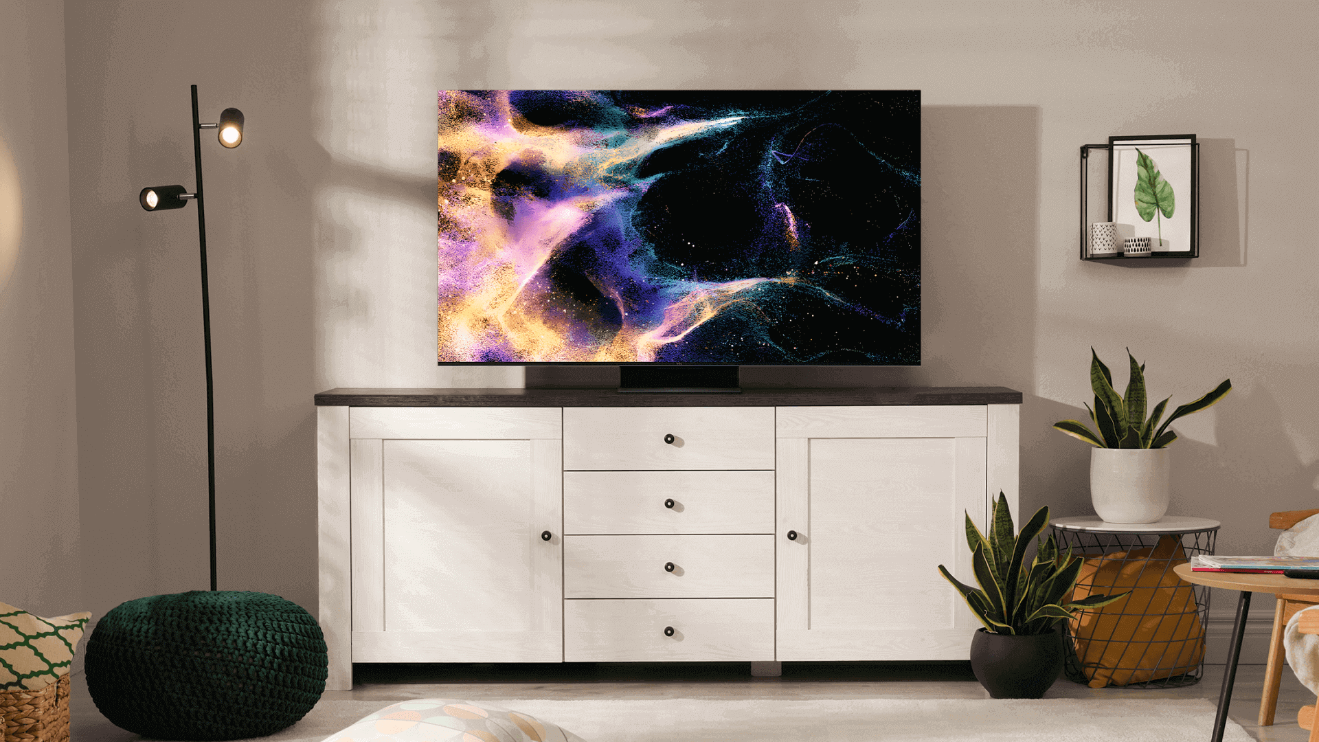 Модель обеспечивает эффект полного погружения, превращая комнату в полноразмерный кинотеатр и восхищая качественной звуковой системой Onkyo. Его визуальные эффекты дополнены Dolby Vision IQ, который обеспечивает улучшенную цветопередачу, повышенную контрастность и яркость. Также этот телевизор не пасует и в видеоиграх за счёт своей исключительной производительности.