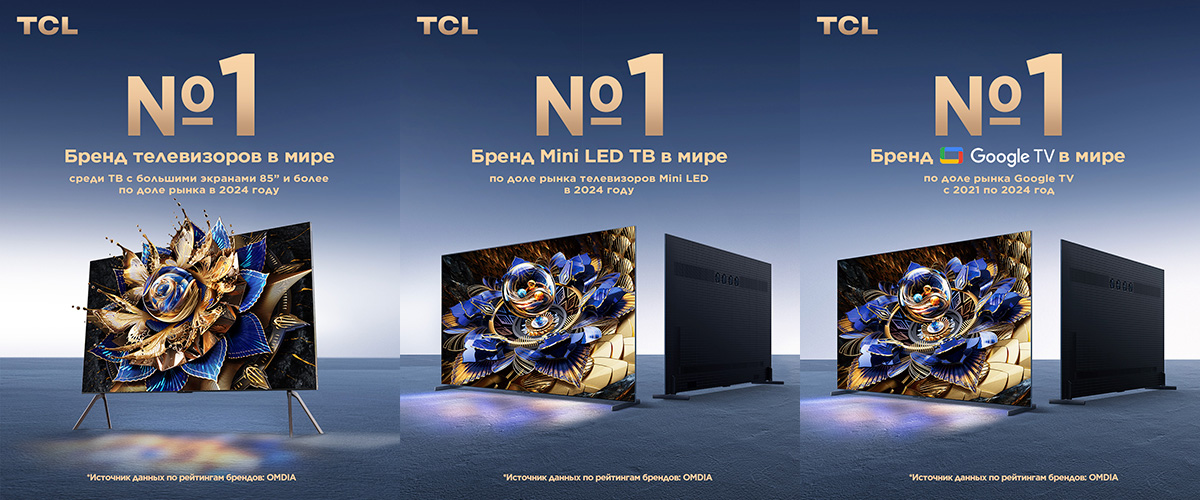 TCL, ведущий производитель потребительской электроники и второй в мире бренд телевизоров, занимает первое место сразу в трёх ключевых категориях мирового рейтинга аналитической компании Omdia, подтвердив своё лидерство по объёмам поставок ультрабольших телевизоров, Mini LED ТВ и телевизоров на базе Google TV.