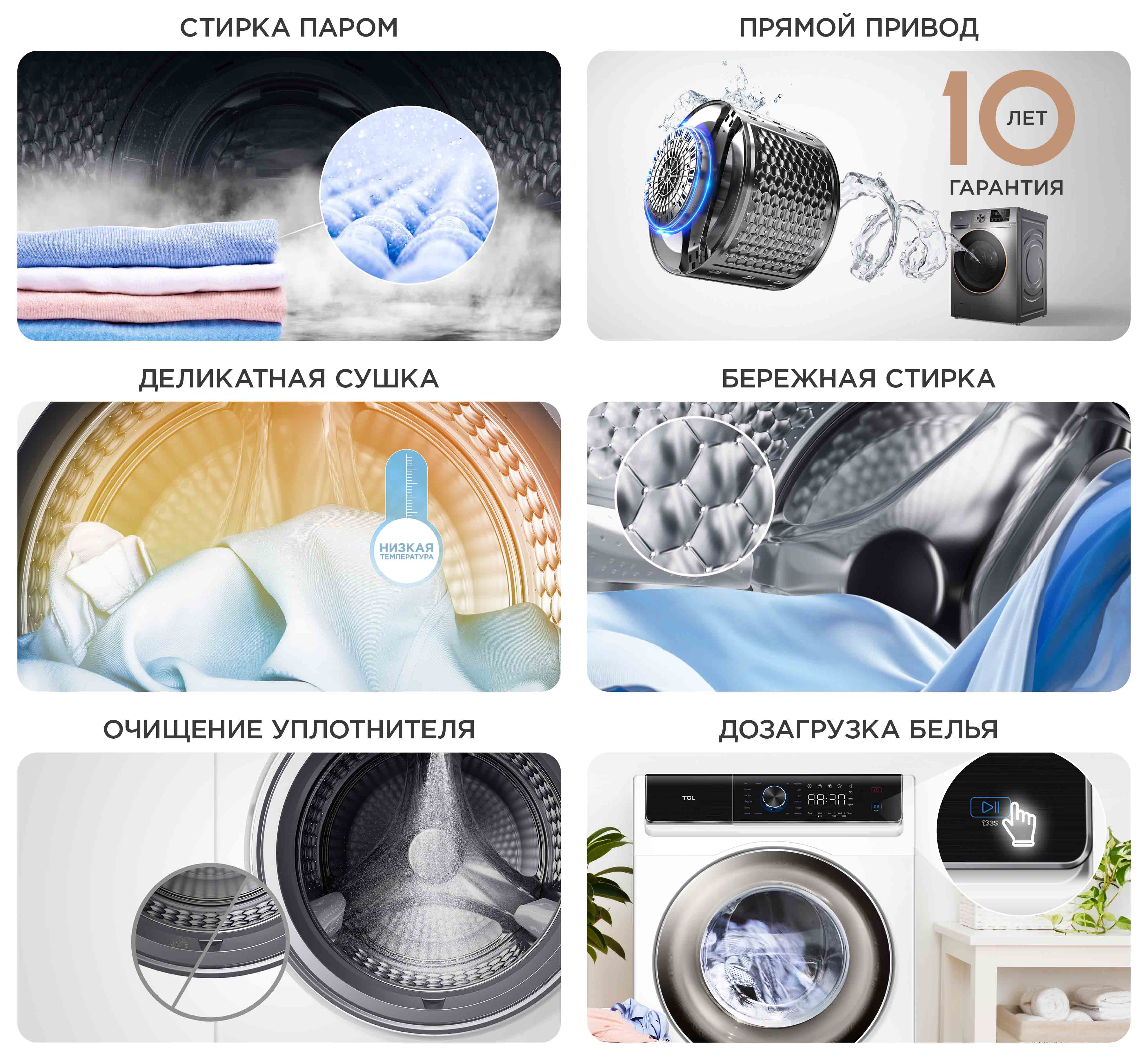 В нижней части барабана образуется гигиенический пар, благодаря чему все белье находится в паровой среде. Это уничтожает вызывающие аллергию бактерии, такие как пылевые клещи, пыльца, шерсть животных и т. д. Ваша одежда отстирывается более тщательно и гигиенично.