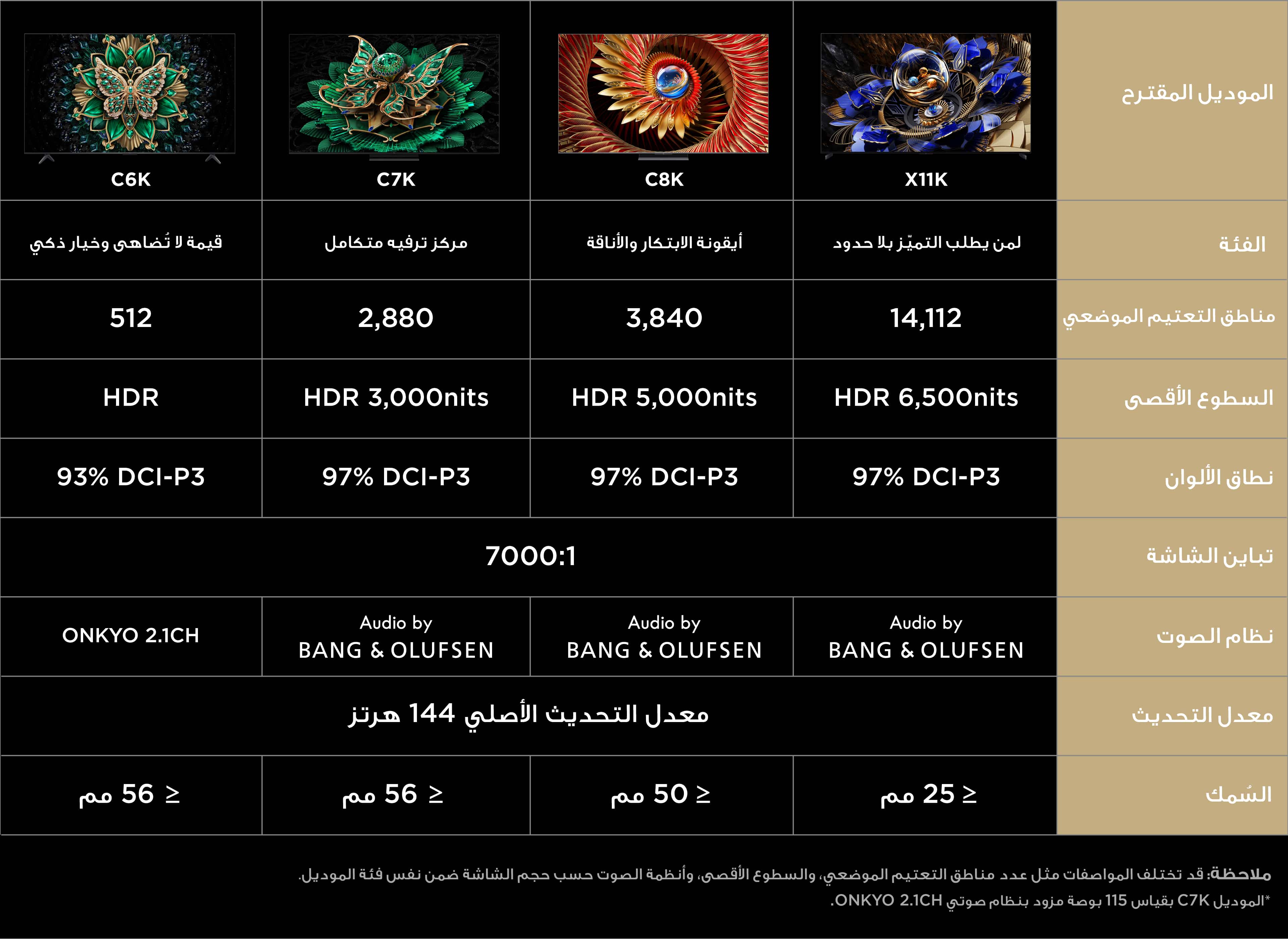 قد يلفتك حجم الشاشة للوهلة الأولى، لكن ما يصنع الفرق الحقيقي هو ما بداخلها. وهنا تتجلّى روعة تقنية QD-Mini LED، التي تمزج بين ألوان QLED الزاهية وسطوع Mini LED المذهل وتفاصيله الدقيقة، لتمنحك تباينًا أعمق، وألوانًا سواداء أكثر واقعية، ووضوحًا يأسرك في كل مشهد. إنها التجربة البصرية الفاخرة التي تمنح الشاشات الكبيرة قيمةً حقيقية، وتحوّل المشاهدة إلى متعة لا تُضاهى.