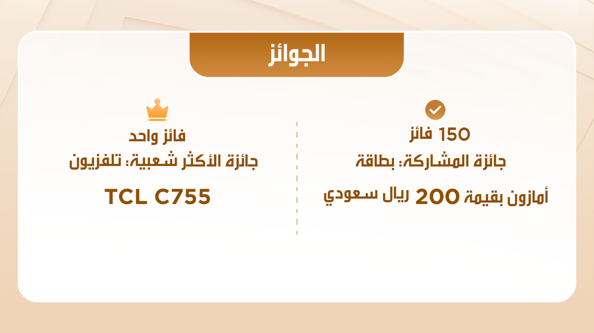 يرجى المبادرة بتقديم معلوماتك الصالحة إلى الحساب الرسمي لشركة TCL في غضون ٧ أيام عمل. سنتواصل معك بناءً على معلوماتك لإرسال الجائزة إليك.