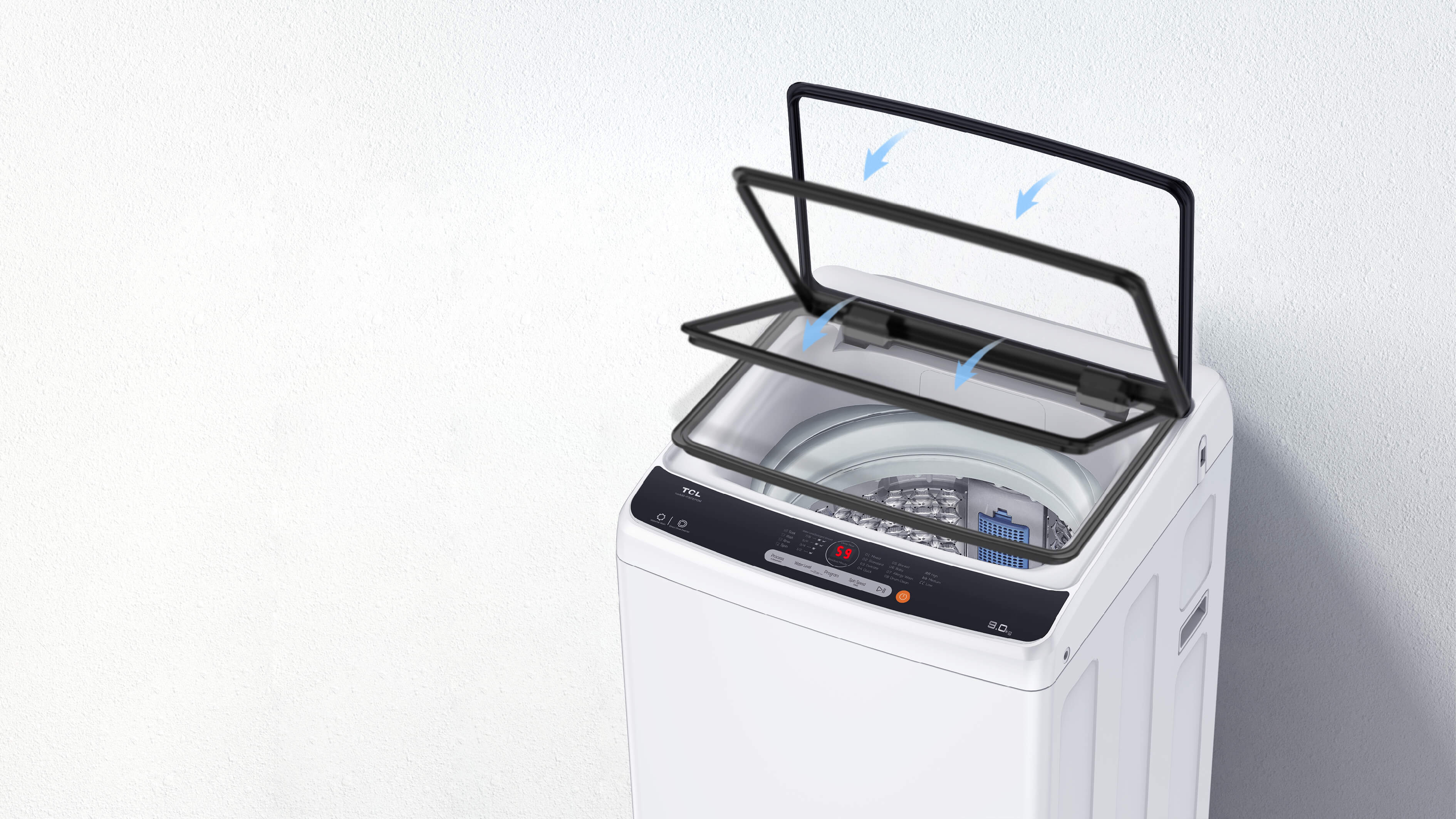 A fully integrated glass lid allows clear viewing of clothes during a cycle and allows items to be added easily. A slow descending mechanism prevents the lid from slamming or catching fingers.