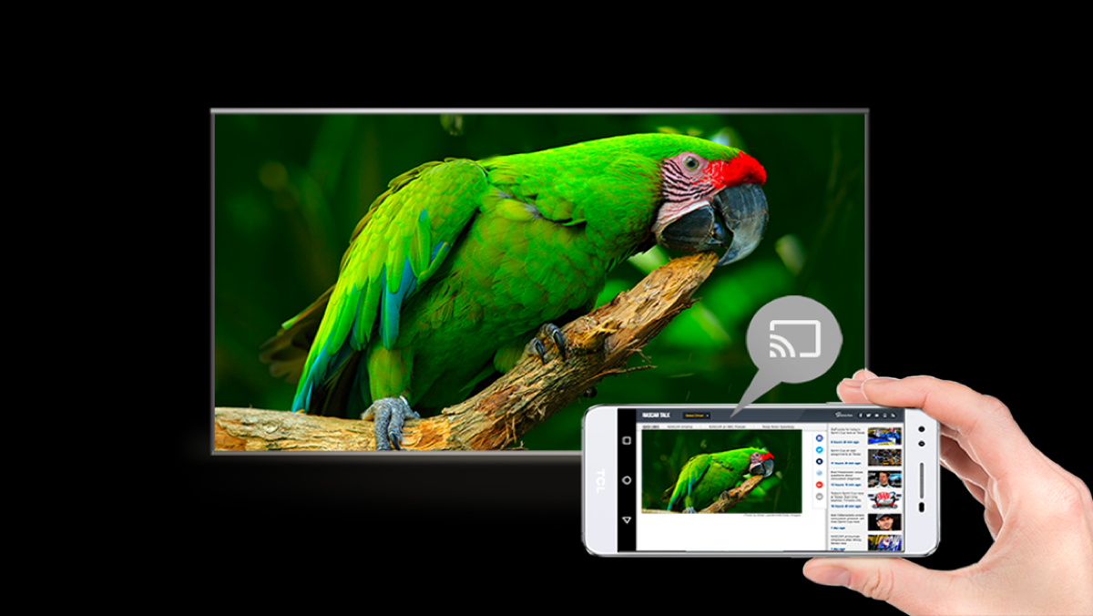Du kan enkelt spela upp dina favoritfilmer, musik och annat från din mobila enhet på TV:n med inbyggd Chromecast. Med ett enda tryck på Cast-knappen på din Android- eller iOS-enhet kan du enkelt sätta din lilla skärm på din stora skärm.