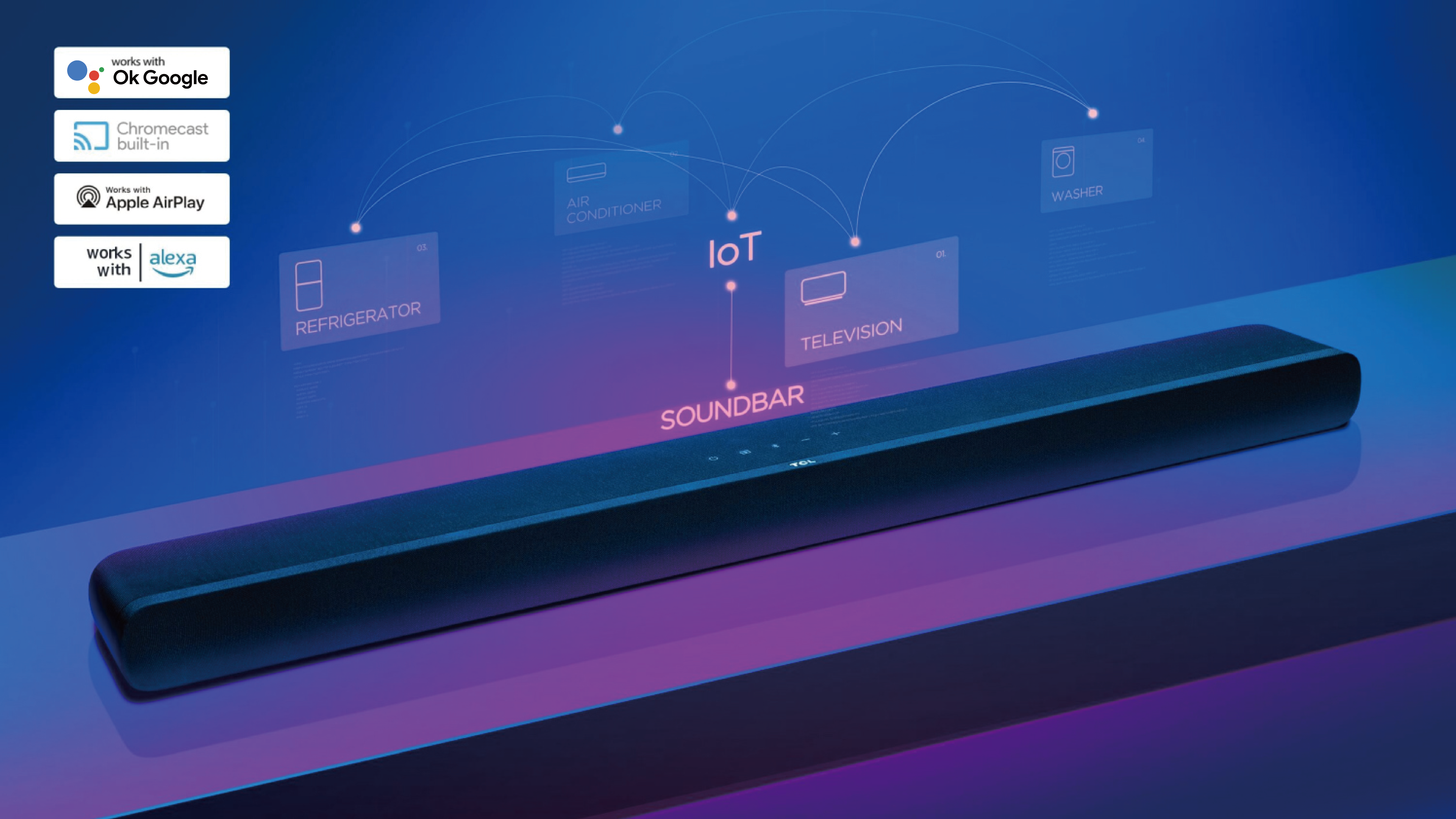 Vďaka WiFi môžete na tomto soundbare prehrávať a ovládať hudbu z mnohých zariadení. Podporuje synchronizáciu s multi-room a taktiež spolupracuje s vašim telefónom či iným zariadením so službami Ok Google, Apple Airplay a Amazon Alexa.