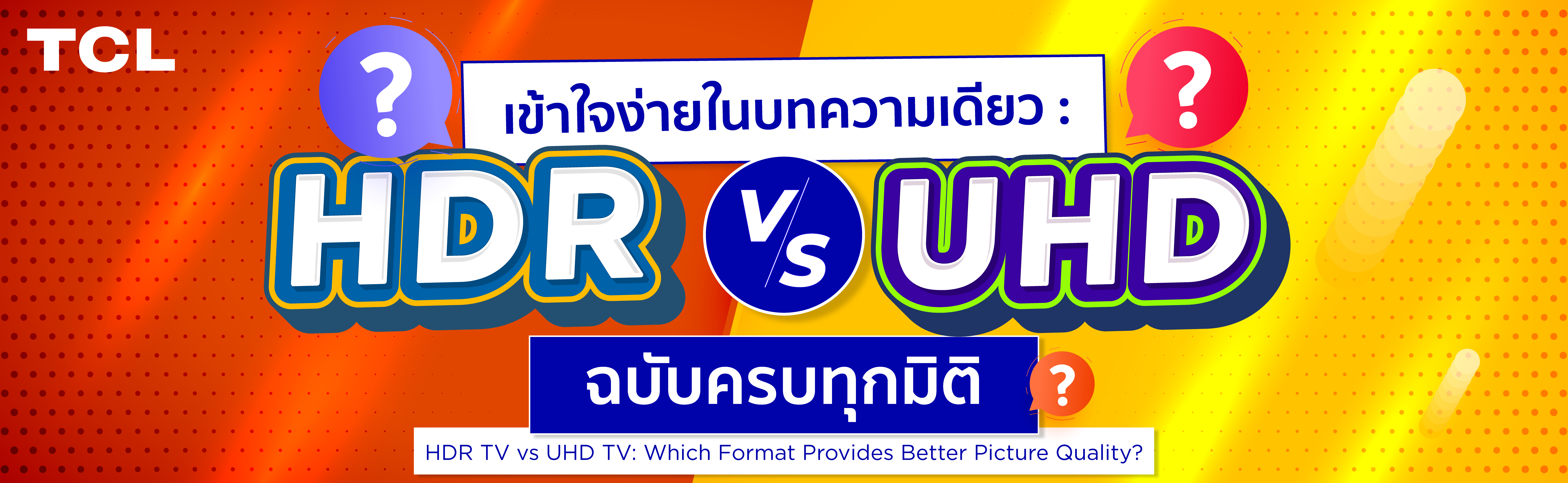 อย่างไรก็ตาม คุณไม่จำเป็นต้องเลือกเพียงอย่างใดอย่างหนึ่ง เพราะทีวีสมัยใหม่ของ TCL ผสานข้อดีของทั้งสองเทคโนโลยีไว้ในเครื่องเดียว เช่น TCL P6K 4K HDR TV, TCL P7K QLED TV, TCL P8K QLED TV ทีวีเหล่านี้รวมความละเอียดระดับ UHD เข้ากับเทคโนโลยี HDR ที่ให้สีสันและคอนทราสต์สมจริง พร้อมขุมพลังจาก AiPQ Processor และเทคโนโลยี Wide Color Gamut เพื่อให้คุณสัมผัสภาพที่ทั้งคมชัดและมีชีวิตชีวาในเวลาเดียวกัน