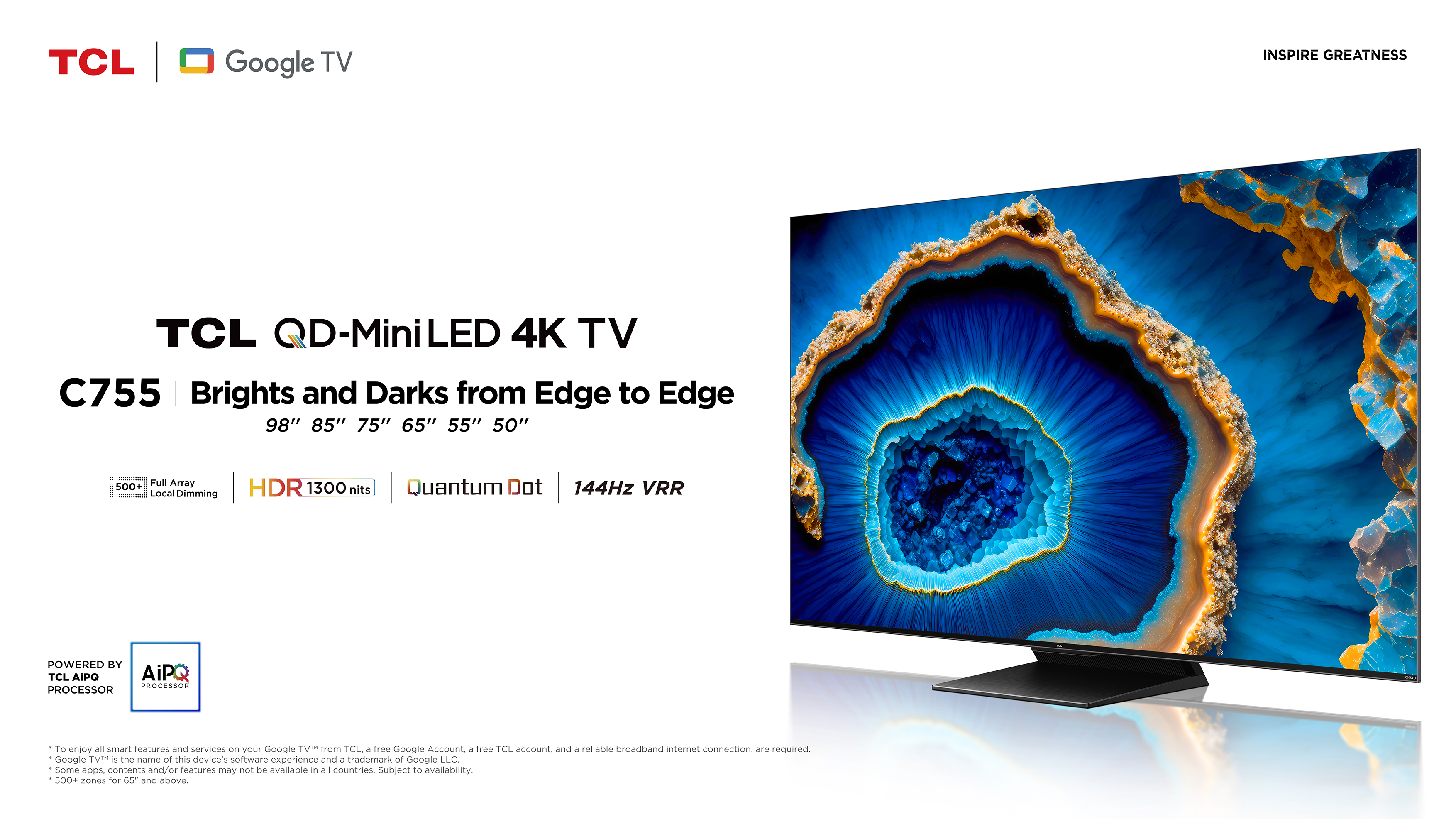นอกจากนี้ TCL C755 ยังรองรับอัตราการรีเฟรชสูงสุดถึง 144Hz VRR ซึ่งช่วยให้ภาพเคลื่อนไหวลื่นไหล เหมาะอย่างยิ่งสำหรับการเล่นเกมและการรับชมคอนเทนต์ที่มีความเร็วสูง ไม่ว่าคุณจะดูภาพยนตร์ แอคชั่น หรือแข่งขันเกม ก็สามารถเพลิดเพลินกับภาพที่ไร้การกระตุกและสีสันที่สมจริง
