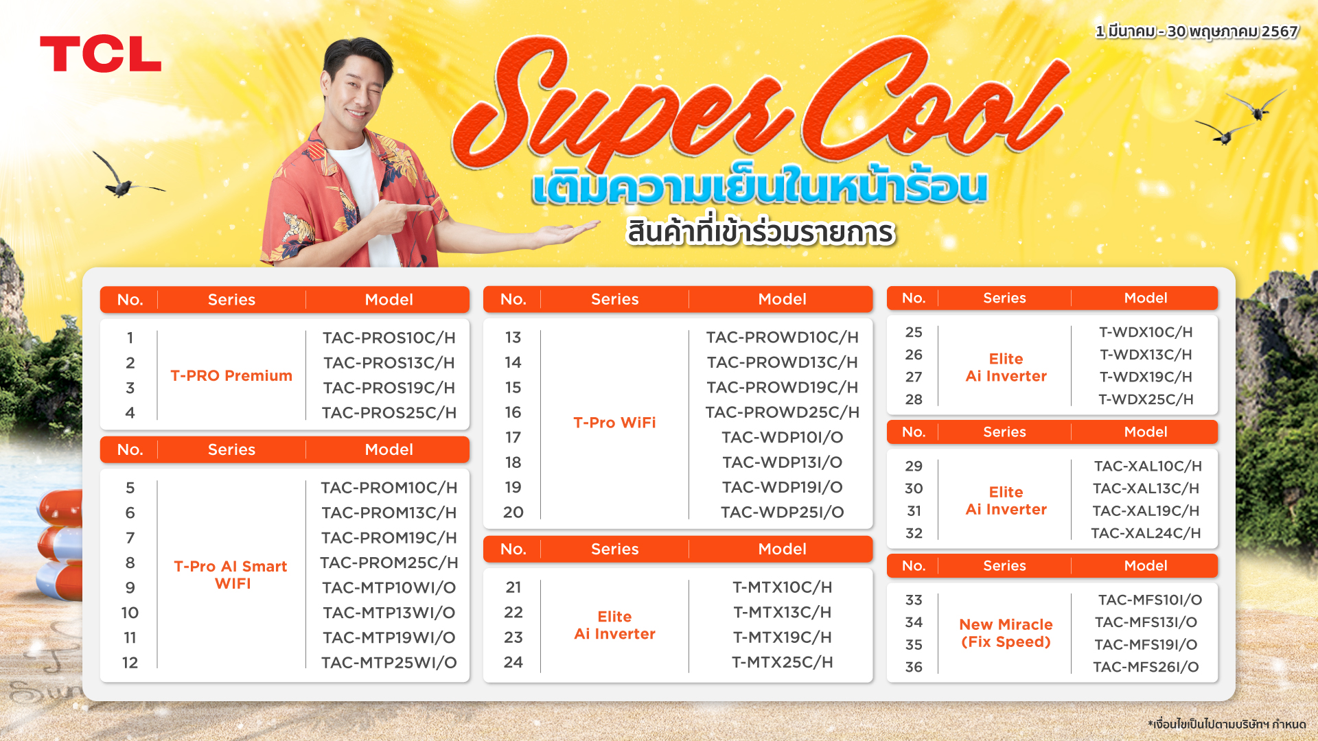 1. เพียงซื้อสินค้าเครื่องปรับอากาศ TCL ที่ร่วมรายการ ตั้งแต่ วันที่ 1 มีนาคม – 30 พฤษภาคม 2567