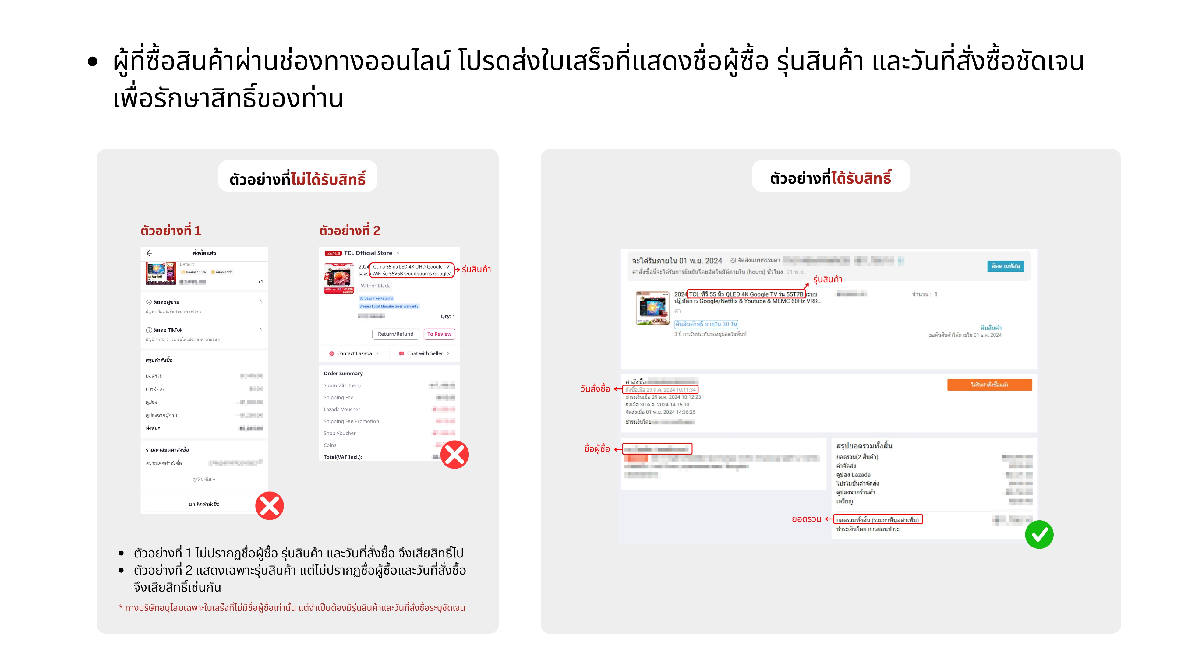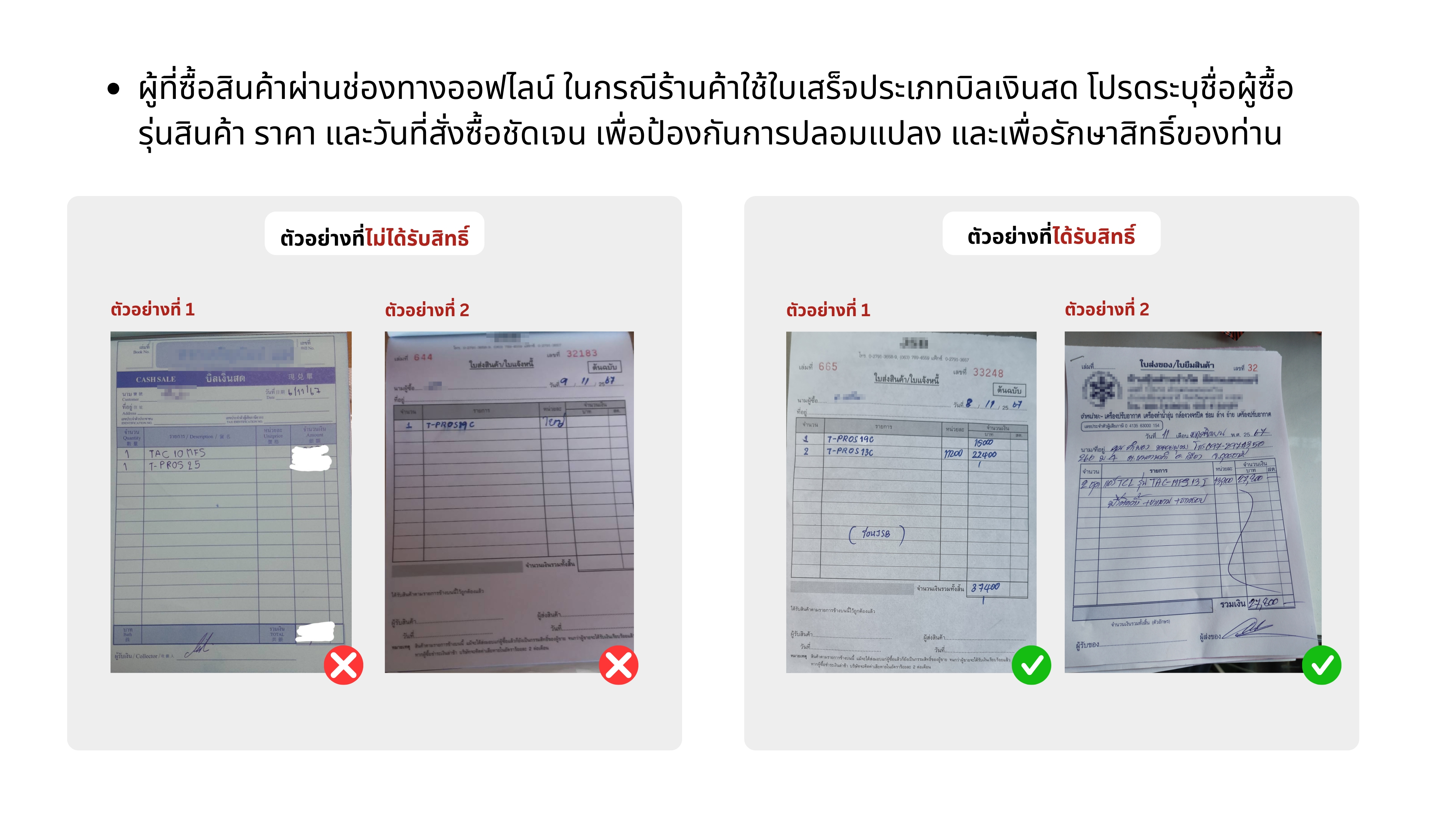 3. โปรดเก็บใบเสร็จที่ลงทะเบียนไว้ใช้สำหรับยืนยันตัวตน และชื่อ – สกุลที่ได้รับรางวัลต้องตรงกับบัตรประชาชน