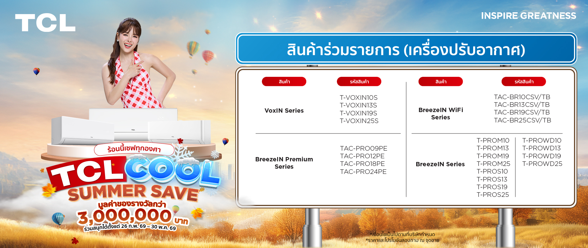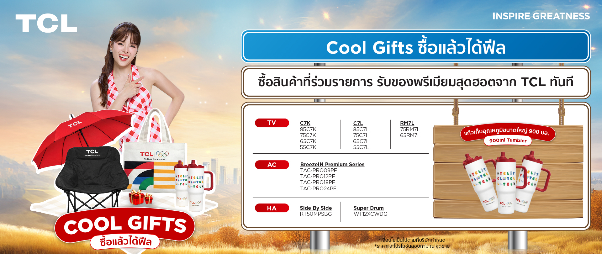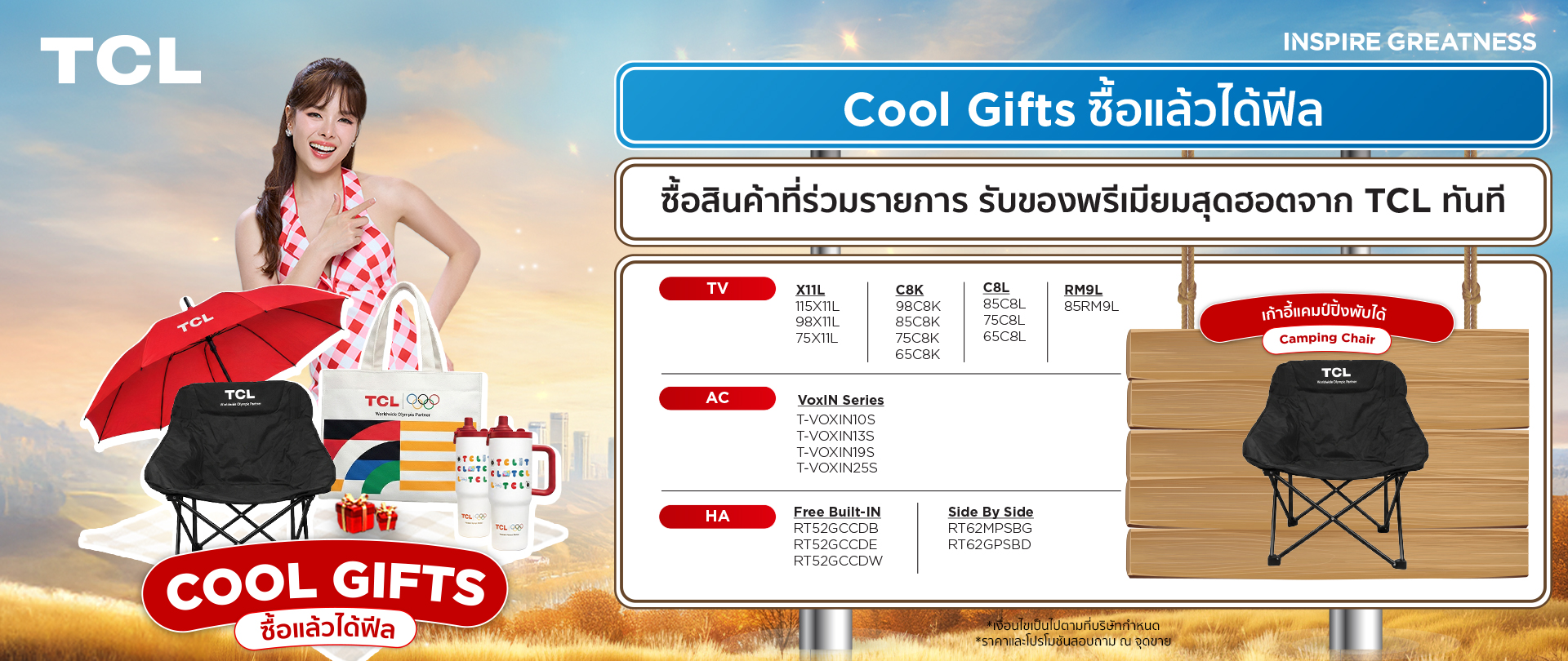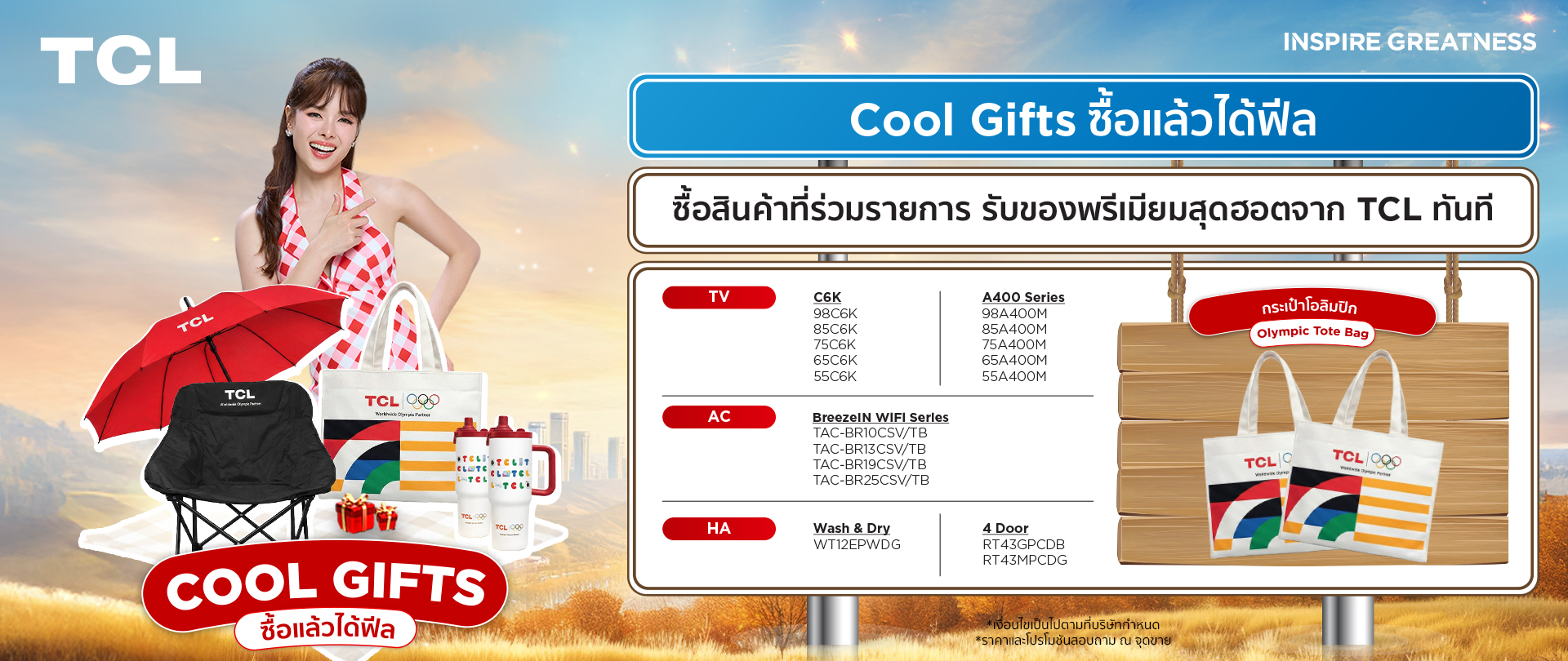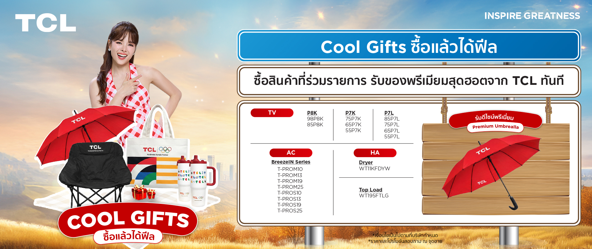 รับของพรีเมียมสุดฮอตจาก TCL ทันที (จำนวนจำกัด) ตั้งแต่วันที่ 26 กุมภาพันธ์ 2569 – 30 พฤษภาคม 2569