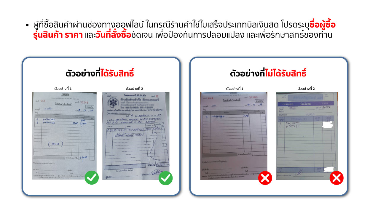 - บริษัทขอสงวนสิทธิ์อ้างอิงวันและเวลาซื้อสินค้าตามหลักฐานใบเสร็จที่แนบมาเท่านั้น