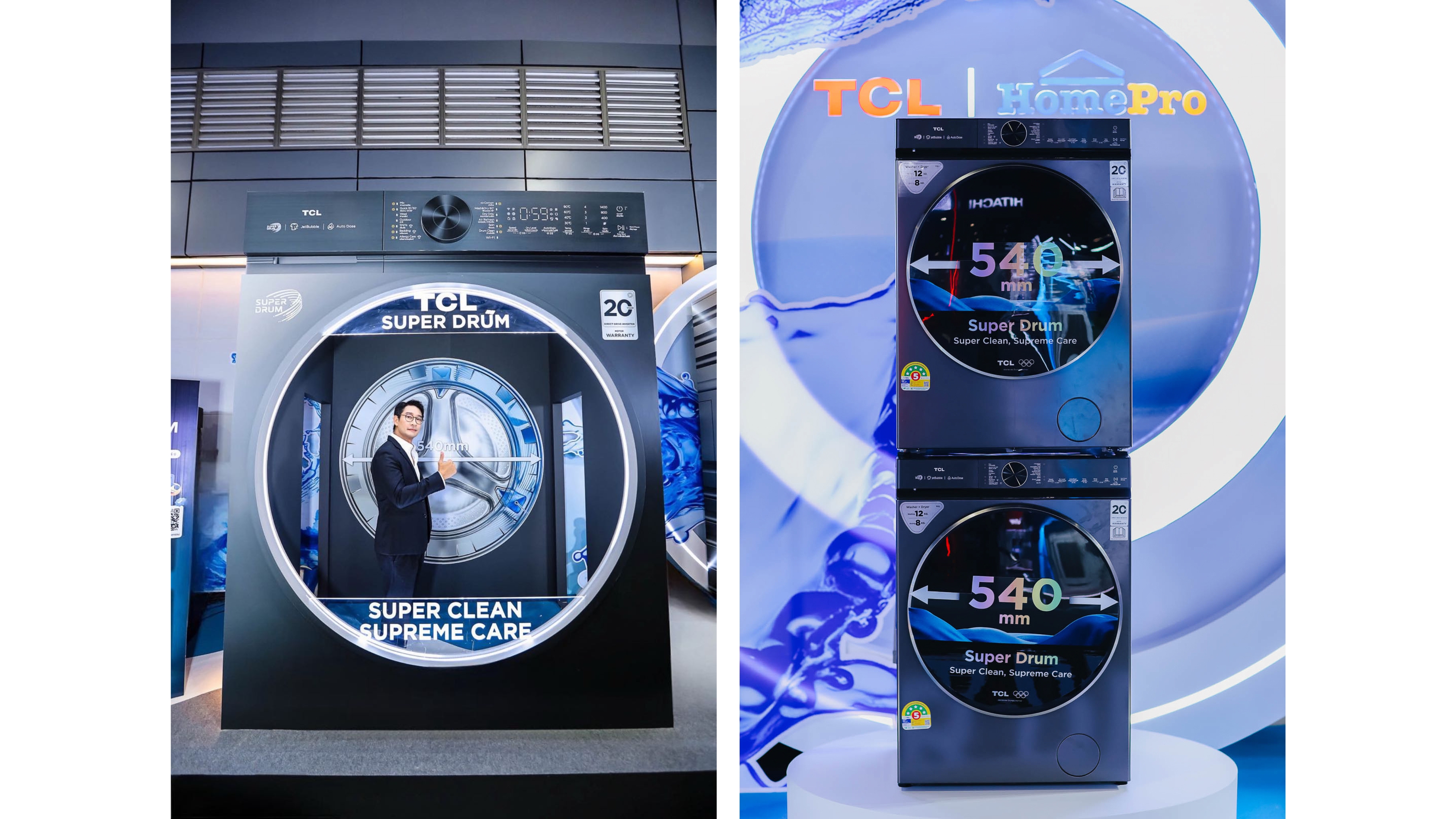 TCL เปิดมิติใหม่ในตลาดเครื่องซักผ้า เปิดตัวเครื่องซักผ้า Super Drum Series รุ่น WT12XCWDG นวัตกรรมสุดล้ำ ถังซักขนาดใหญ่ถึง 540 มม. และฟังก์ชันอัจฉริยะอย่างครบครัน เช่น Super Smart – เชื่อมต่อ Wi-Fi ควบคุมการใช้งานด้วยแอปฯ TCL HOME สามารถคอนโทรลเชื่อมต่อได้ทุกที่ทุกเวลา Super Clean – ดูแลเหนือระดับ ซักสะอาดหมดจด Super Care – ใส่ใจสุขภาพ ปลอดภัยต่อทุกคนในครอบครัว ครบจบทั้งซักและอบในเครื่องเดียวตอบโจทย์ทุกไลฟ์สไตล์ของผู้บริโภคยุคใหม่ เตรียมจัดแคมเปญสุดยิ่งใหญ่ รวมของขวัญสุดพิเศษกว่า 6,000,000 บาท ปลายเดือนตุลาคมนี้