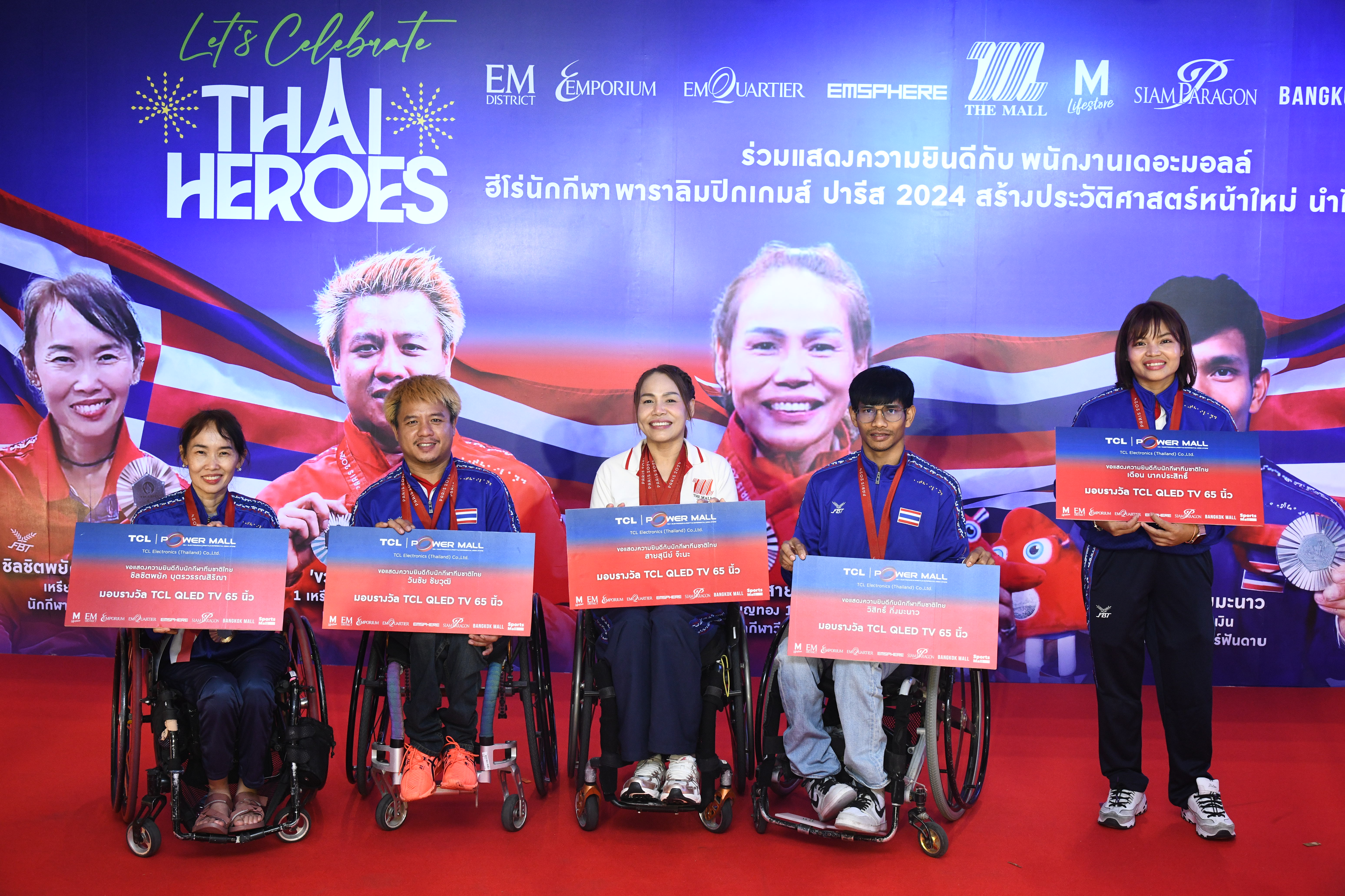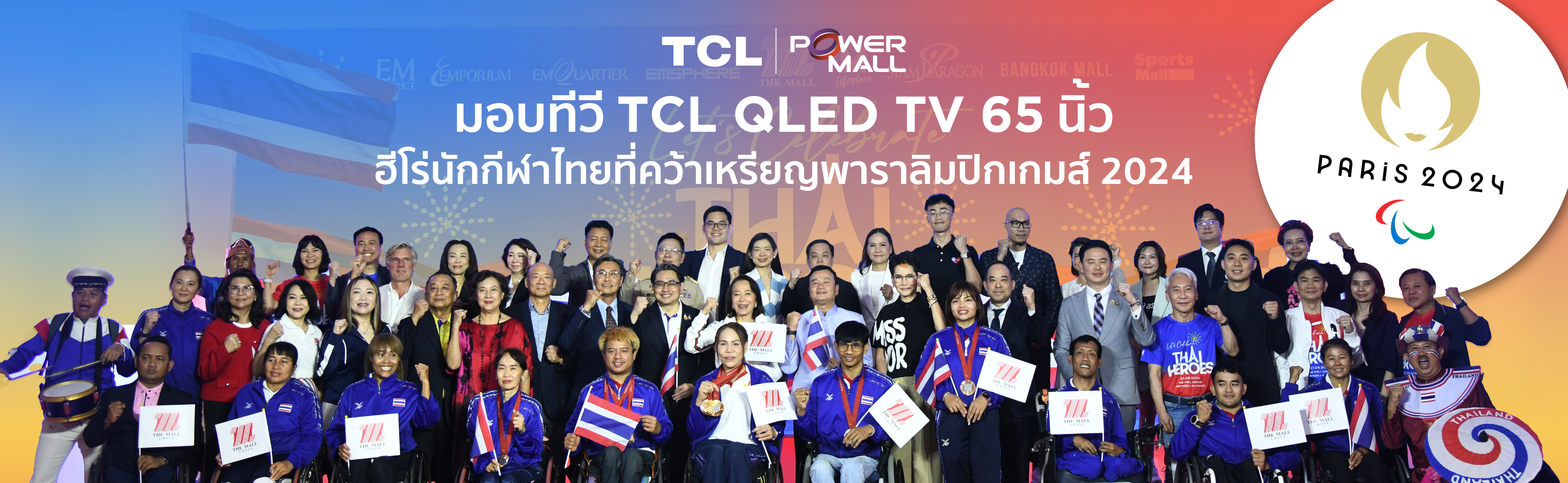 TCL ร่วมกับ Power Mall แสดงความยินดีกับฮีโร่นักกีฬาไทยที่คว้าเหรียญจากพาราลิมปิกเกมส์ 2024 โดยมีคุณดอน ถาง ผู้อำนวยการฝ่ายการตลาด บริษัท ทีซีแอล อิเล็กทรอนิกส์ (ไทยแลนด์) จำกัด และ คุณศุภลักษณ์ อัมพุช ประธานกรรมการบริหาร กลุ่มบริษัท เดอะมอลล์ กรุ๊ป ร่วมมอบ TCL QLED TV ขนาด 65 นิ้ว แสดงความยินดีกับฮีโร่นักกีฬาไทยที่คว้าเหรียญจากพาราลิมปิกเกมส์ 2024 ที่กรุงปารีส ประเทศฝรั่งเศส นำโดย สายสุนีย์ จ๊ะนะ นักกีฬาที่สร้างประวัติศาสตร์คว้าเหรียญทอง วีลแชร์ฟันดาบครบ 3 ประเภท และเหรียญทองแดง, วันชัย ชัยวุฒิ เหรียญเงินและเหรียญทองแดงเทเบิลเทนนิส, วิสิทธิ์ กิ่งมะนาว เหรียญเงิน วีลแชร์ฟันดาบชาย, ชิลชิตพยัค บุตรวรรณสิรินา เหรียญทองแดง เทเบิลเทนนิส, เดือน นาคประสิทธิ์ เหรียญทองแดง วีลแชร์ฟันดาบหญิง ณ MCC HALL THE MALL LIFESTYLE BANGKAPI