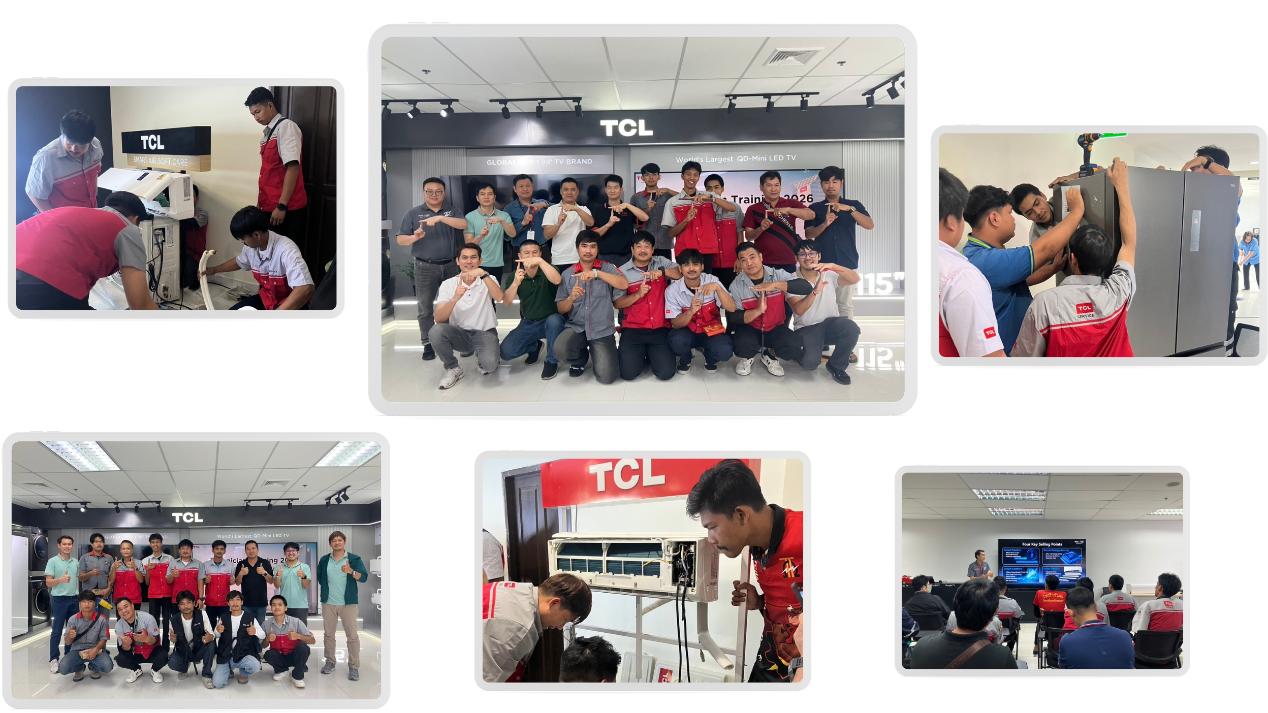 โครงการดังกล่าวได้รับเกียรติจากทีมผู้เชี่ยวชาญและเจ้าหน้าที่ฝึกอบรมจากสำนักงานใหญ่ TCL Headquarters ร่วมกับทีมวิศวกรและผู้เชี่ยวชาญด้านเทคนิคจาก TCL Thailand ที่มาร่วมถ่ายทอดองค์ความรู้เชิงลึกเกี่ยวกับผลิตภัณฑ์และนวัตกรรมรุ่นปี 2026 ครอบคลุมกลุ่มสินค้าเครื่องปรับอากาศ ตู้เย็น และเครื่องซักผ้า ซึ่งถือเป็นกลุ่มผลิตภัณฑ์หลักที่ได้รับความนิยมในตลาดประเทศไทย