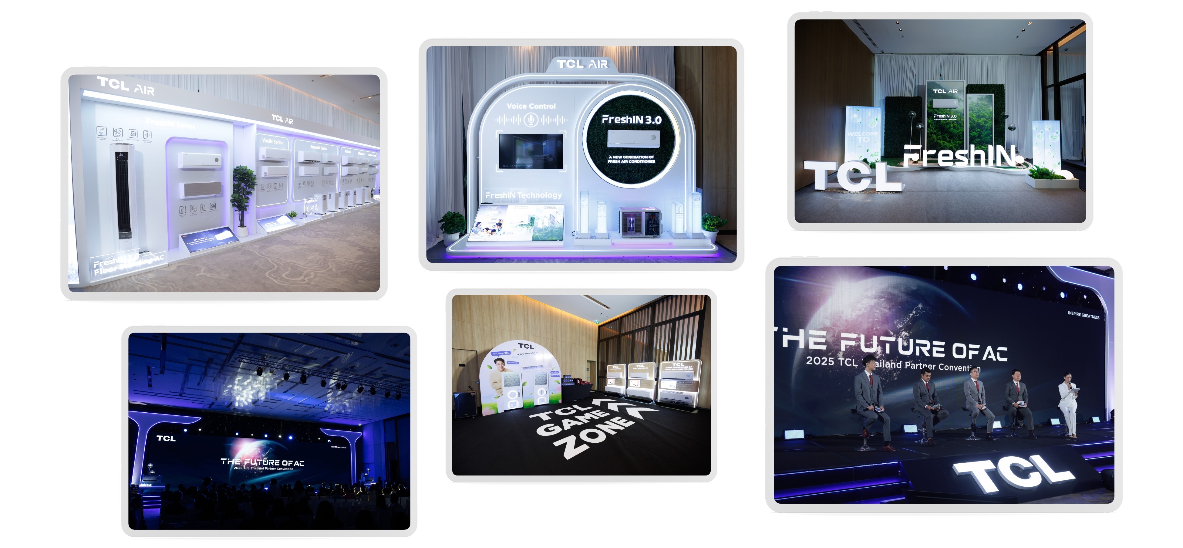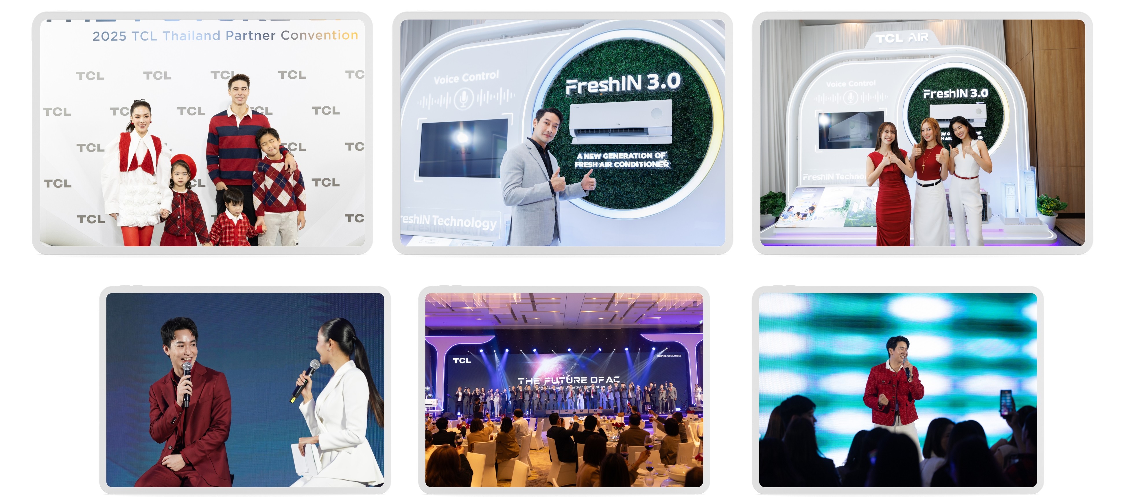 งานเปิดตัว TCL FreshIN 3.0 Series จัดขึ้นอย่างยิ่งใหญ่ ณ โรงแรมคอร์ทยาร์ด บาย แมริออท กรุงเทพฯ สุวรรณภูมิ แอร์พอร์ท โดยมีสื่อมวลชนและ KOL ชื่อดังมาร่วมสร้างสีสันมากมาย พร้อมกับกิจกรรมเล่นเกมให้ผู้ร่วมงานได้สนุกสนาน รวมถึงโซนจัดแสดงสินค้าเครื่องปรับอากาศที่แสดงถึงความล้ำสมัยของผลิตภัณฑ์ และดินเนอร์ปาร์ตี้สุดหรูในช่วงค่ำ นำโดยศิลปิน "คุณไอซ์ ศรัณยู" ร่วมสร้างความสนุกสุดมันส์ เพื่อเป็นการขอบคุณพาร์ทเนอร์ แขกผู้มีเกียรติของเราทุกท่านที่ให้การสนับสนุนบริษัททีซีแอลตลอดทั้งปี 2024 ที่ผ่านมา