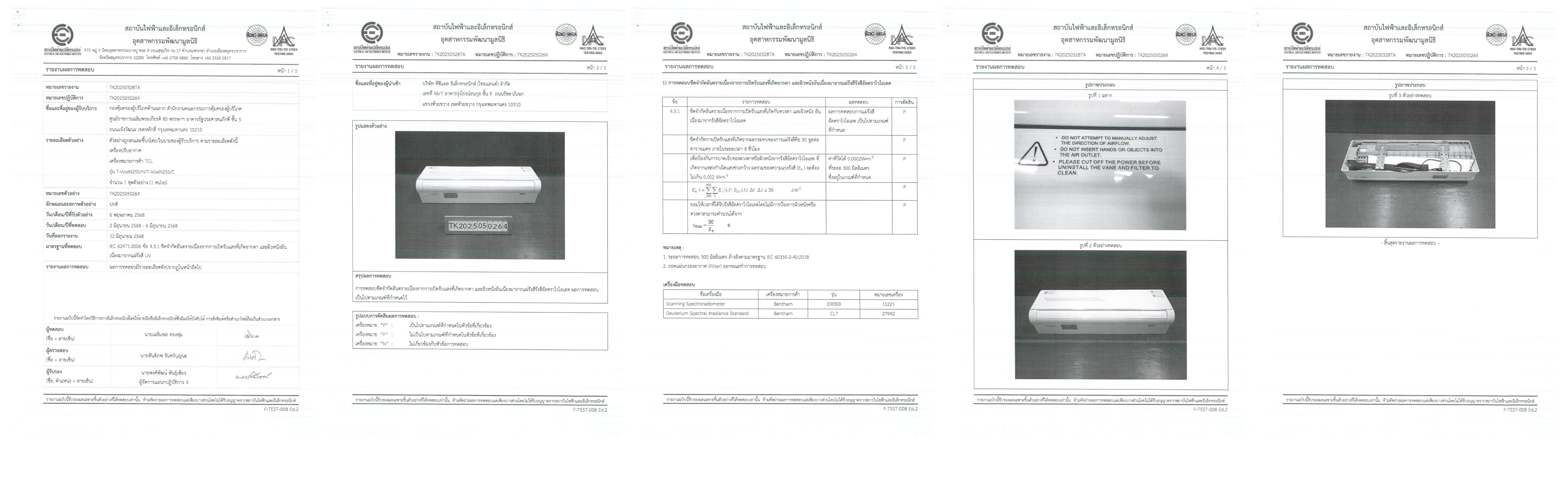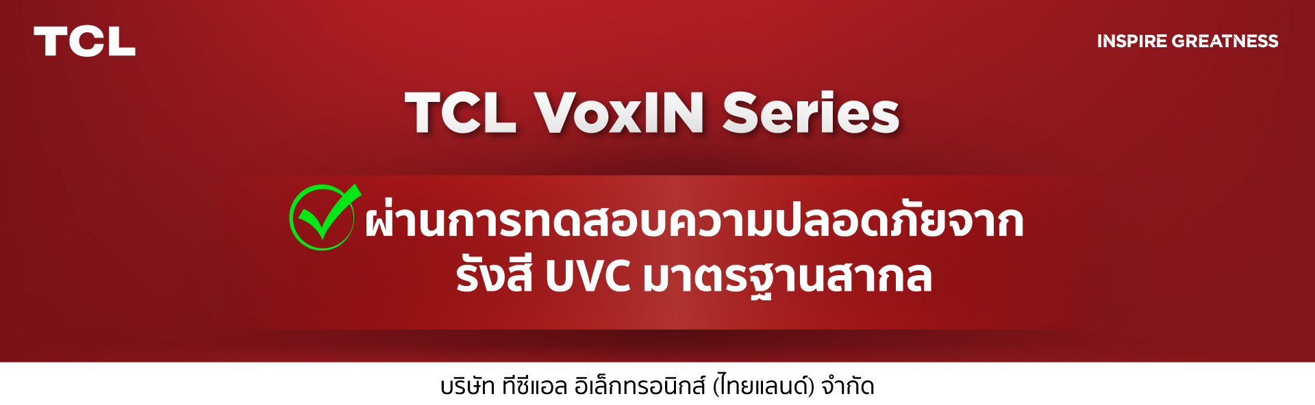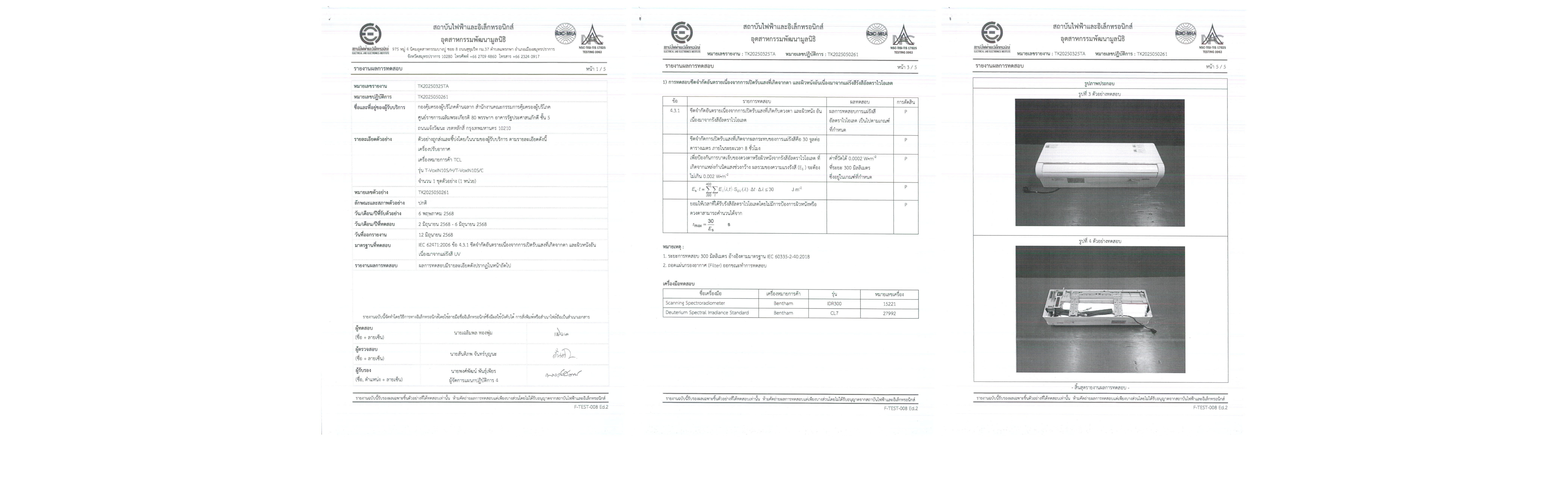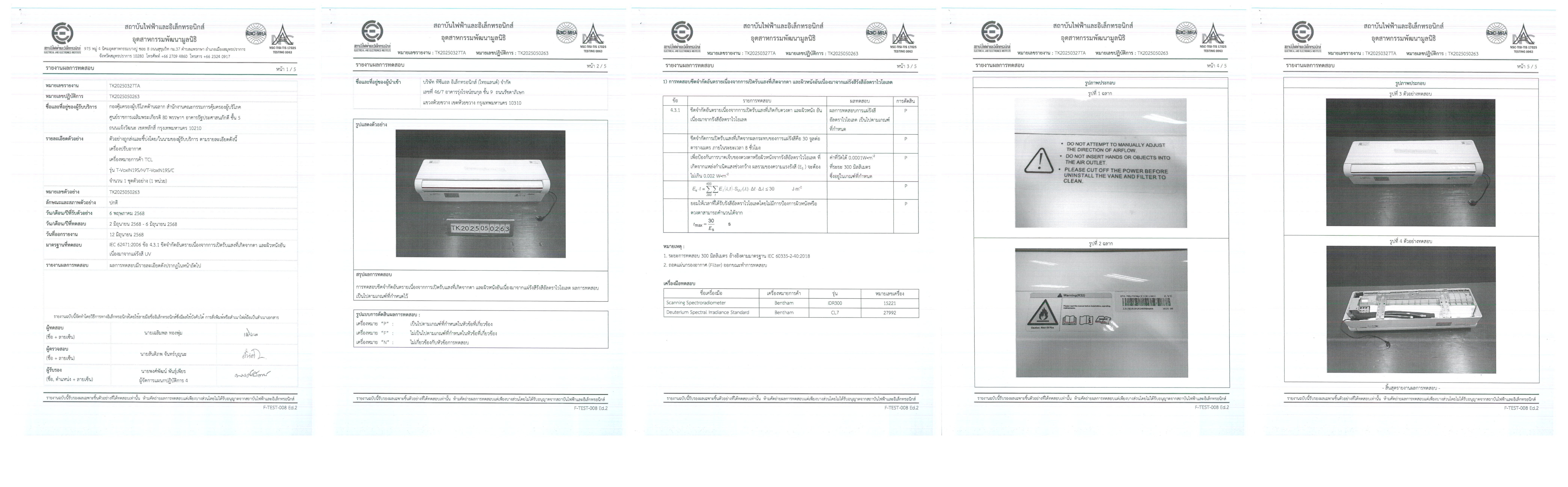 บริษัท ทีซีแอล อิเล็กทรอนิกส์ (ไทยแลนด์) จำกัด ขอประกาศผลการทดสอบความปลอดภัยของเครื่องปรับอากาศ TCL VoxIN Series ได้แก่ รุ่น VoxIN10, VoxIN13, VoxIN19 และ VoxIN25 โดยการทดสอบครั้งนี้ได้ดำเนินการตามมาตรฐานสากล IEC 62471:2006 ข้อ 4.3.1 ว่าด้วย Photobiological Safety ซึ่งเป็นมาตรฐานที่ครอบคลุมการประเมินความปลอดภัยจากการเปิดรับรังสีที่อาจส่งผลกระทบต่อดวงตาและผิวหนังของผู้ใช้งาน