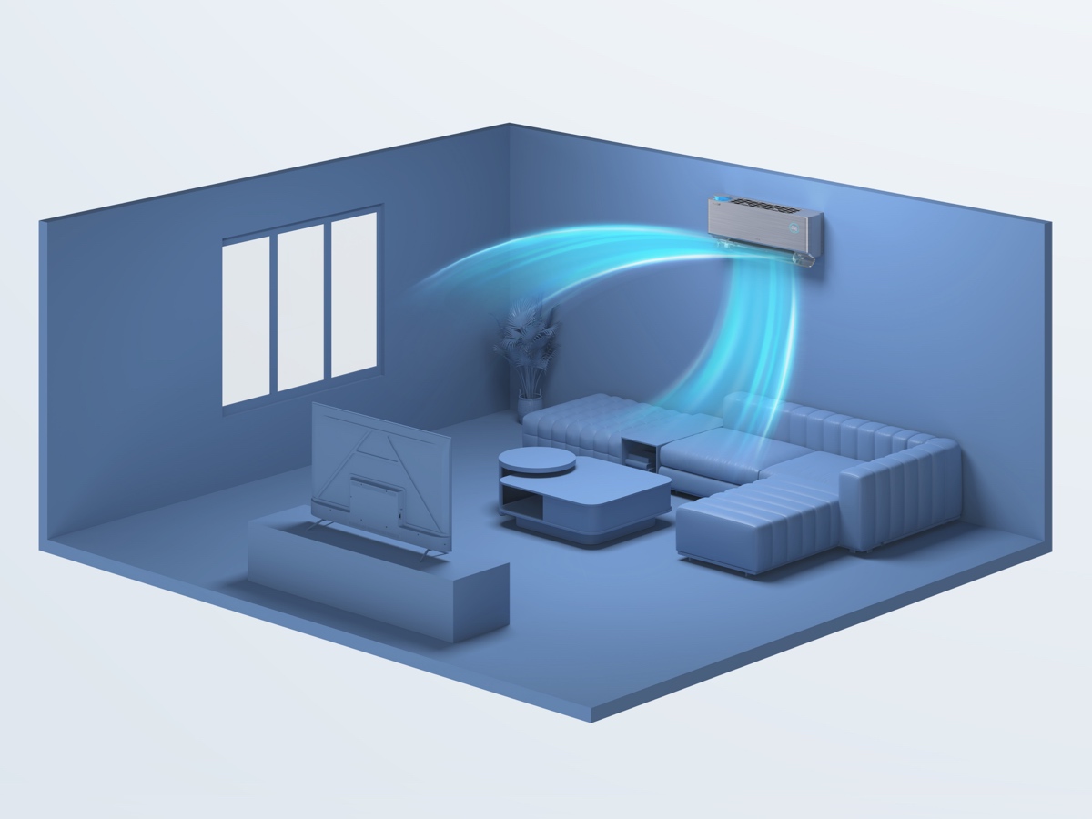 360° hareket edebilen, yenilikçi geniş kanat tasarımı, tüm iç mekana her köşeden esnek ve eşit bir şekilde geniş açılı hava üflemesi sağlar.