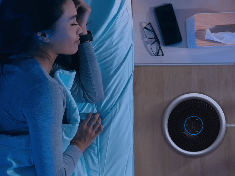 Breeva'nın gerçekten sessiz (sadece 26 desibel) gibi sessiz uyku modu ile huzurlu, dolu bir gece uykusunun tadını çıkarın, sağlıklı bir şekilde uyumanızı ve temiz havaya uyanmanızı sağlar.