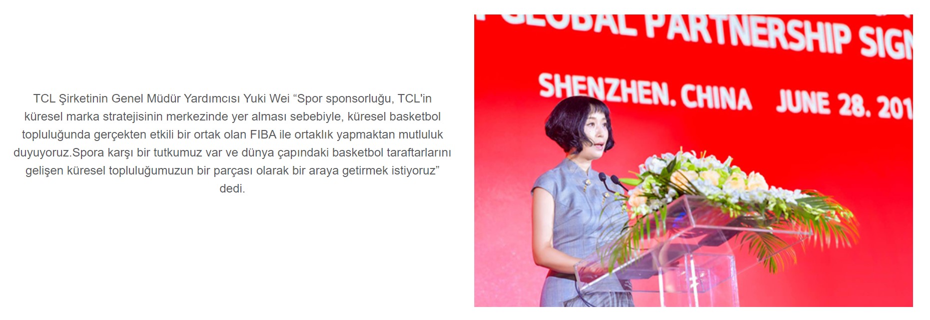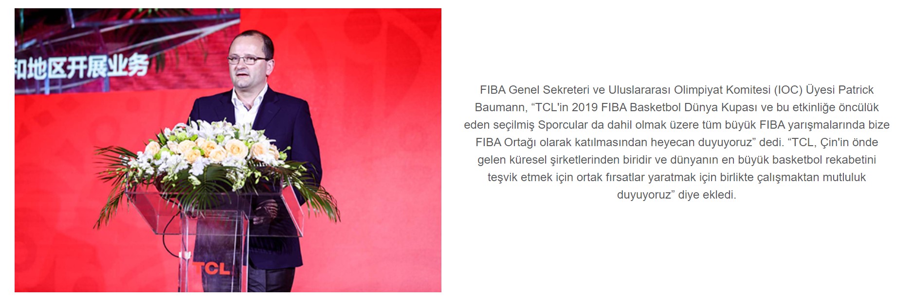 [Shenzhen, 28 Haziran 2018] - İlk üç küresel televizyon üreticisi ve önde gelen tüketici elektroniği markasından biri olan TCL, bugün Uluslararası Basketbol Federasyonu (“FIBA”) ile kapsamlı bir küresel ortaklık ilan etti.