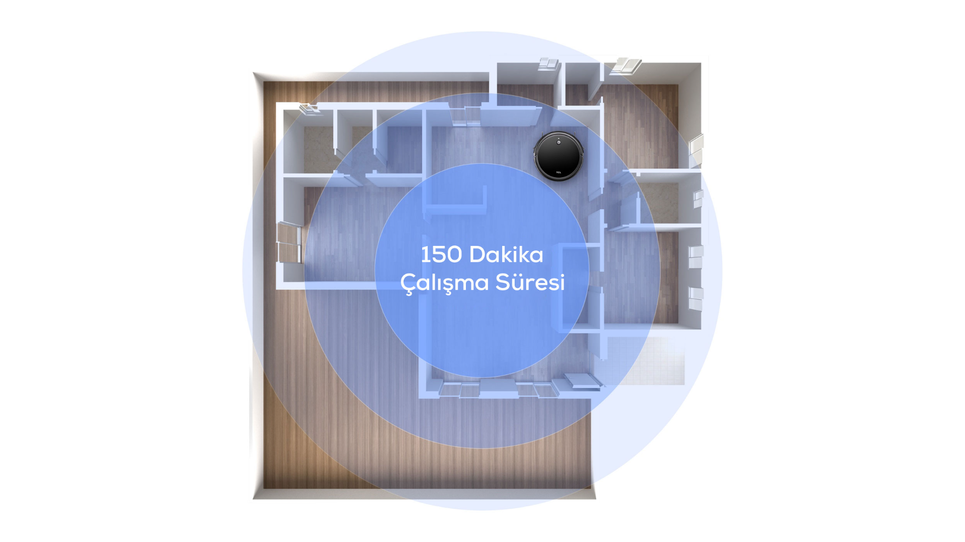 *Sweeva cihazı sert zeminde standart emiş gücünde çalışırken test edilmiştir.