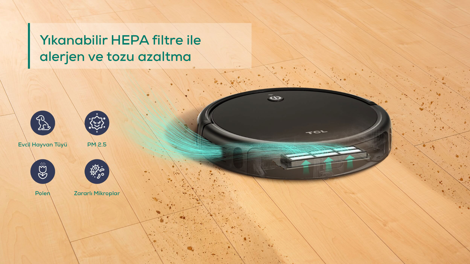 HEPA Filtre alerjenleri ve havadaki partikülleri geri üflemeden hapseder.