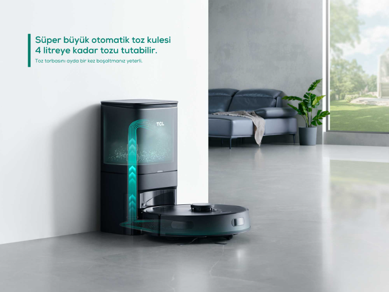 4 litreye kadar toz alan otomatik boşaltmalı çöp kutusunu temizlemeden bir ay boyunca eller serbest .