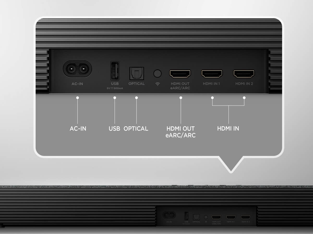 A single cable connection with enhanced Audio Return Channel (eARC) allows your soundbar to support almost all available sound formats and enables your TV to control your soundbar automatically. No more juggling between remote controls.