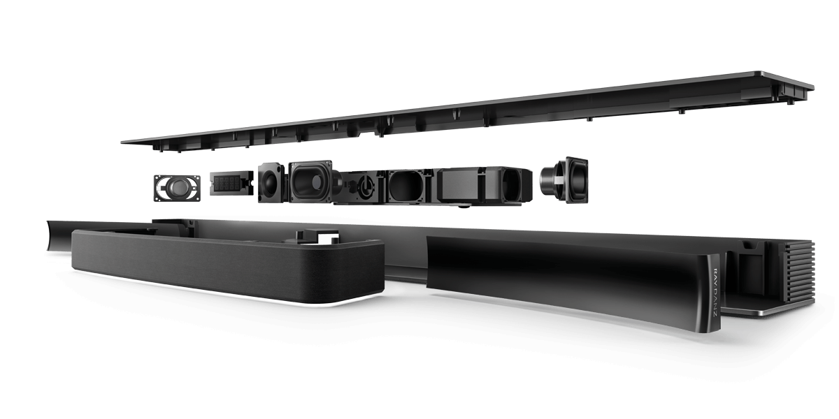 Exclusive RAY·DANZ technology delivers an ultrawide soundstage from a slim 3.1 channel sound bar.