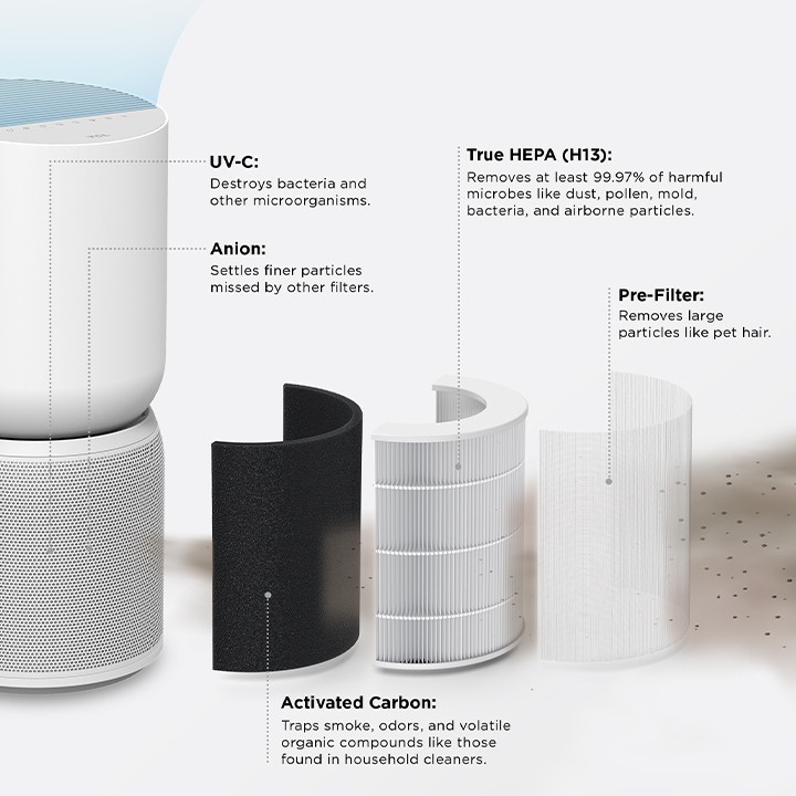 Pre-Filter + True HEPA H13 HEPA + Activated Carbon |