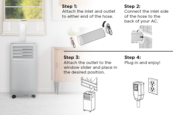 Set up your portable AC unit in minutes with the simple installation kit and enjoy easy movement from room to room.