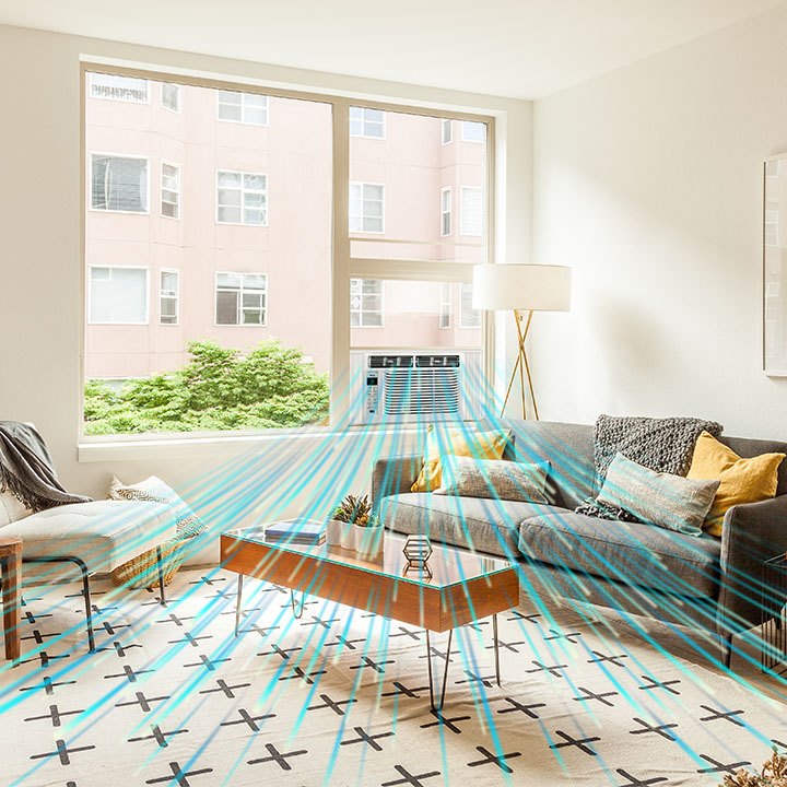 A robust cooling power of 5,000 BTU cools a room up to 150 sq. ft., letting you enjoy a more comfortable home with a noise level as low as 50 decibels.*