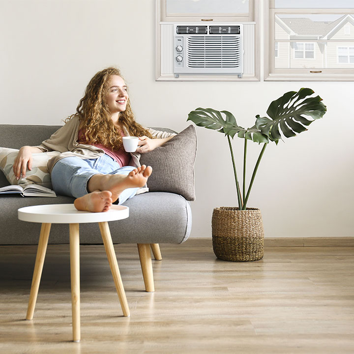 A robust cooling power of 5,000 BTU cools a room up to 150 sq. ft., letting you enjoy a more comfortable home with a noise level as low as 50 decibels.*