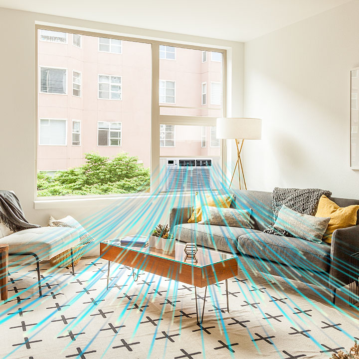 A robust cooling power of 8,000 BTU cools a room up to 350 sq. ft., letting you enjoy a more comfortable home with a noise level as low as 53 decibels.