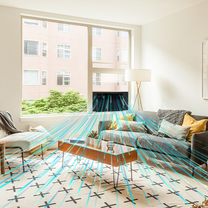 A robust cooling power of 8,000 BTU cools a room up to 350 sq. ft., letting you enjoy a more comfortable home with a noise level as low as 53 decibels.
