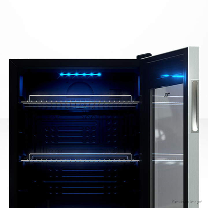 Stores up to 102 cans. From sodas and seltzers to craft beers and bottled water, this beverage cooler adapts to your needs. Whether you’re outfitting a home bar, office breakroom, dorm room, or guest suite, its compact footprint, adjustable shelving, and sleek design make it the perfect cooling solution for any space.