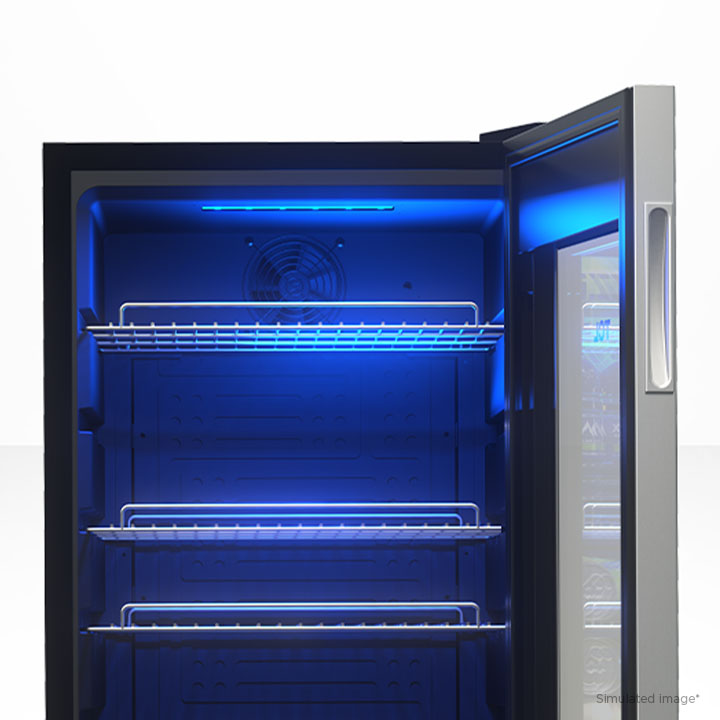 Stores up to 121 cans. From sodas and seltzers to craft beers and bottled water, this beverage cooler adapts to your needs. Whether you’re outfitting a home bar, office breakroom, dorm room, or guest suite, its compact footprint, adjustable shelving, and sleek design make it the perfect cooling solution for any space.