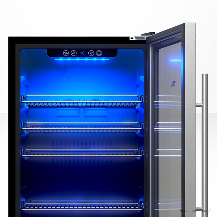 Stores up to 132 cans. From sodas and seltzers to craft beers and bottled water, this beverage cooler adapts to your needs. Whether you’re outfitting a home bar, office breakroom, dorm room, or guest suite, its compact footprint, adjustable shelving, and sleek design make it the perfect cooling solution for any space.