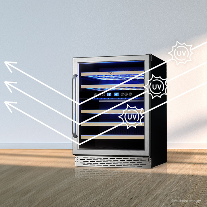 Easy-to-use LED interface for precise temperature adjustments. With the dual temperature zones, the independently controlled upper (40°F–50°F) and lower (50°F–66°F) zones are perfect for red and white wines