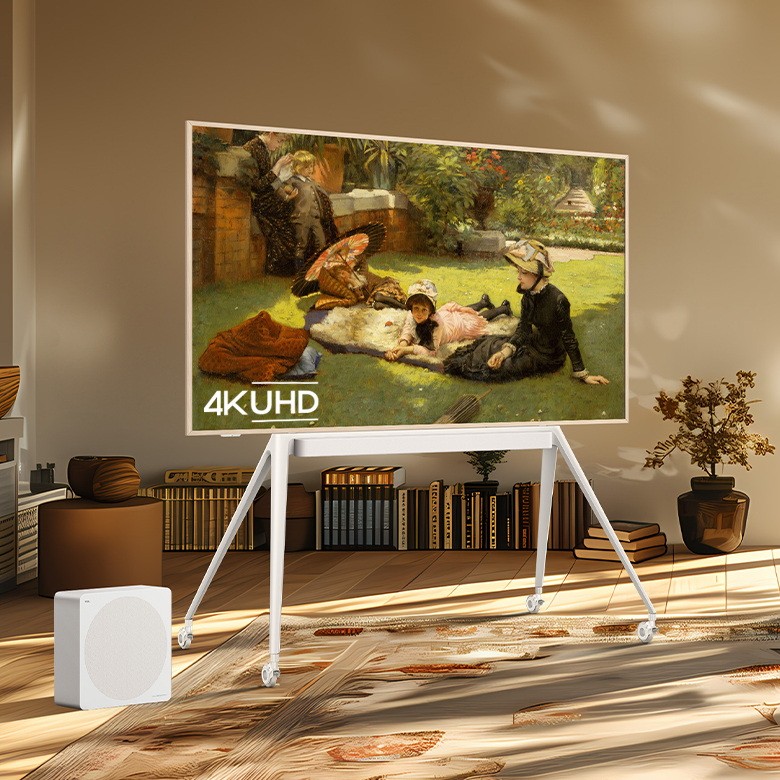 Comes with a curated Art Library, AI Art capability, multiple matte options, and a personal photo gallery mode.