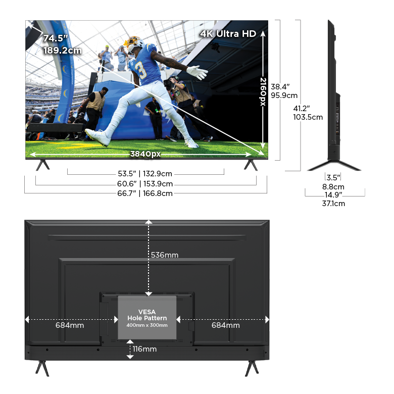 Experience incredible detail with 4X the resolution of 1080p Full HDTVs.