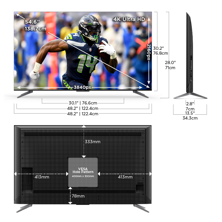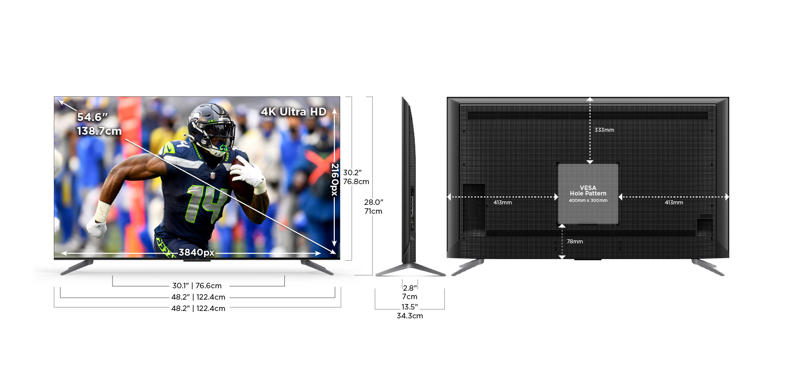 Imagine everything you want in a TV including 120Hz Panel Refresh Rate, Full Array PRO Local Dimming, High Brightness PRO LED Backlight, the advanced TCL AIPQ Engine Gen3, Dolby Vision IQ, Game Accelerator 240 with AMD FreeSync Premium Pro Certification, IMAX Enhanced Certification, Hands Free Voice Control, Backlit Remote, and Adjustable Width Stand