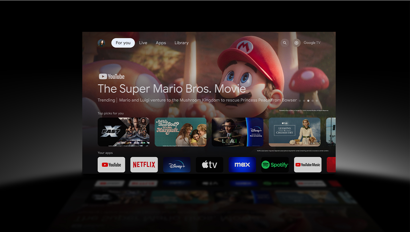Google TV is the name of this device's software experience and a trademark of Google LLC. Google, YouTube, Google Cast, and YouTube Music are trademarks of Google LLC.