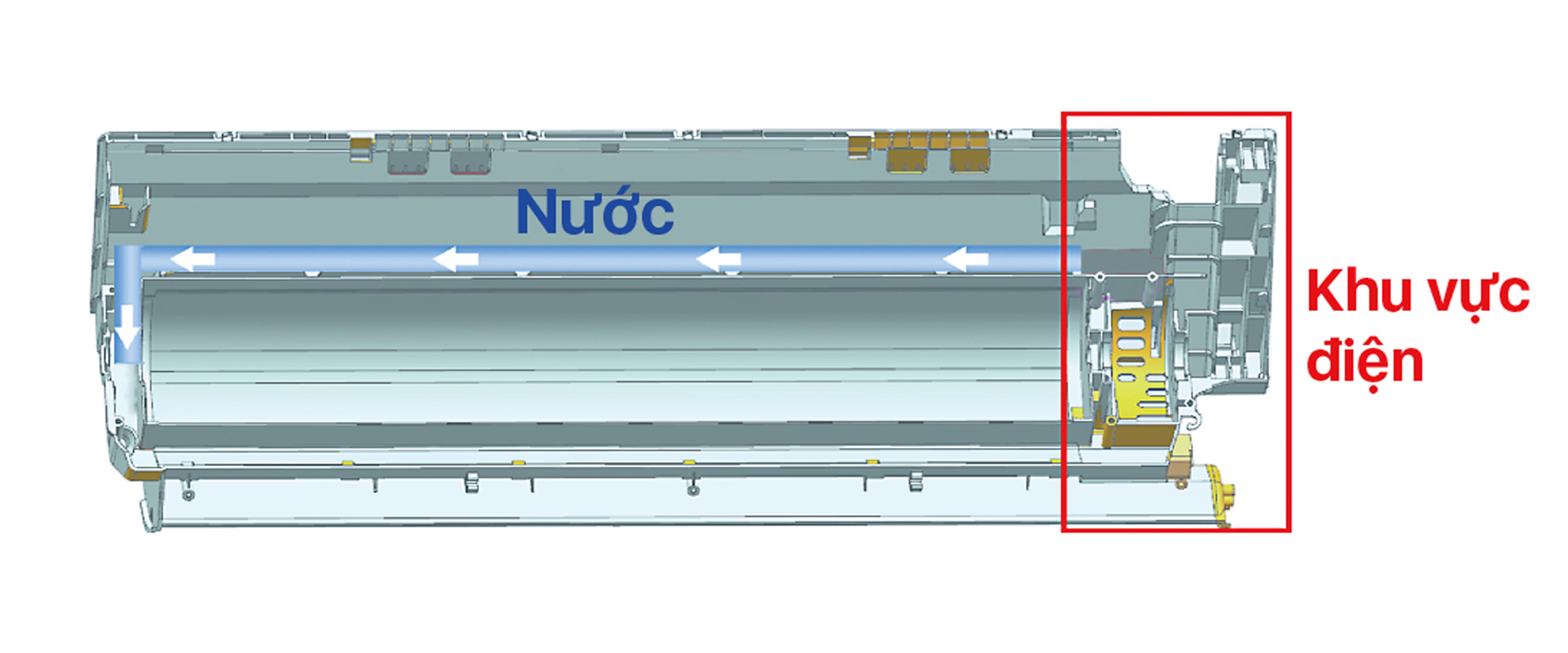 Dòng chảy của nước sinh ra trong quá trình trao đổi nhiệt được tối ưu và sẽ không có tiếp xúc trực tiếp hoặc ở gần hộp điều khiển điện do đó sự an toàn được tăng cao.