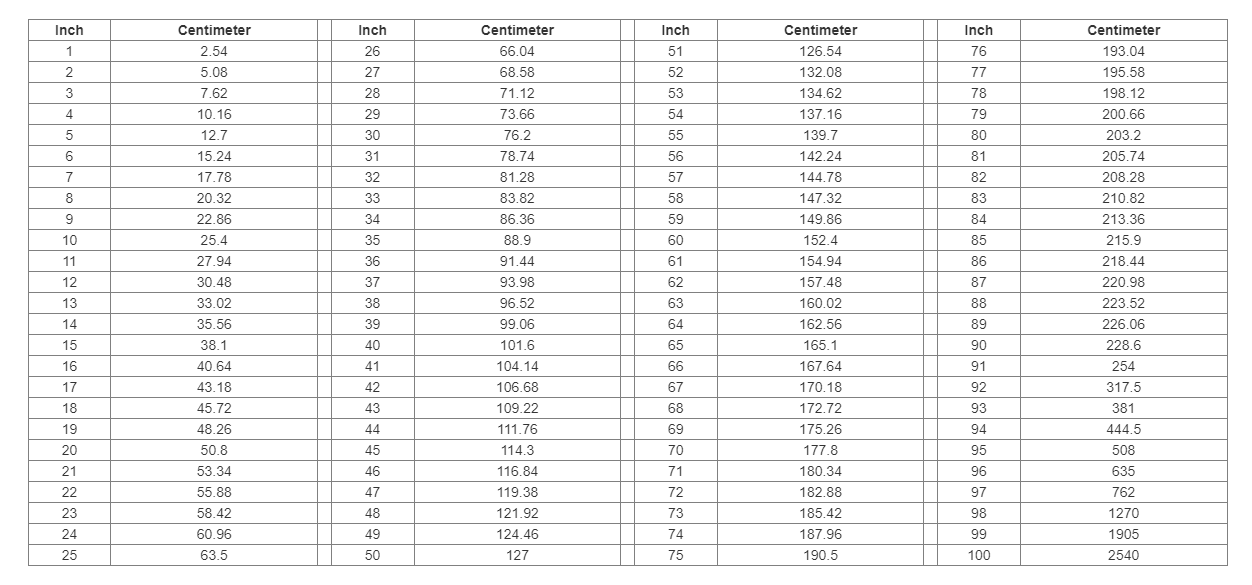 So với tỷ lệ độ dài đơn vị centimet thì đơn vị inch lớn hơn khoảng gấp ba. Một Inch sẽ tương đương với 2.54 cm.