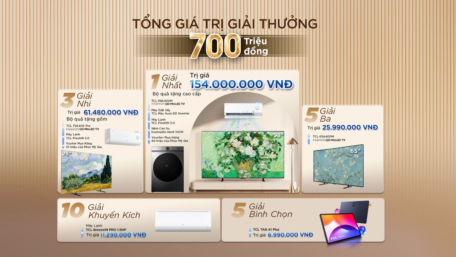 Thông qua chủ đề “Dẫn Đầu Công Nghệ - Sống Đỉnh Phong Cách”, cuộc thi nhấn mạnh vai trò của TV TCL như một điểm chạm trung tâm, mang đến chất lượng hình ảnh đỉnh cao, nâng tầm trải nghiệm giải trí và định hình thẩm mỹ không gian với thiết kế siêu mỏng giàu tính nghệ thuật. Đồng thời, hệ sinh thái thiết bị TCL như máy lạnh, máy giặt, tủ lạnh… được kết nối và vận hành liền mạch qua ứng dụng TCL Home, tạo nên một tổng thể sống thông minh, tiện nghi và đồng nhất. Tất cả hòa quyện để kiến tạo nên không gian sống hiện đại, nơi công nghệ, cảm xúc và phong cách cùng thăng hoa.