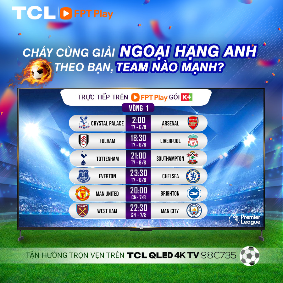 Được xem là bước đi đầu tiên trong việc trở thành thương hiệu gắn liền với thể thao, TCL Việt Nam chính thức trở thành đối tác quảng cáo trong chuỗi trận đấu Ngoại Hạng Anh 2022 - 2023 trên kênh truyền hình K+.