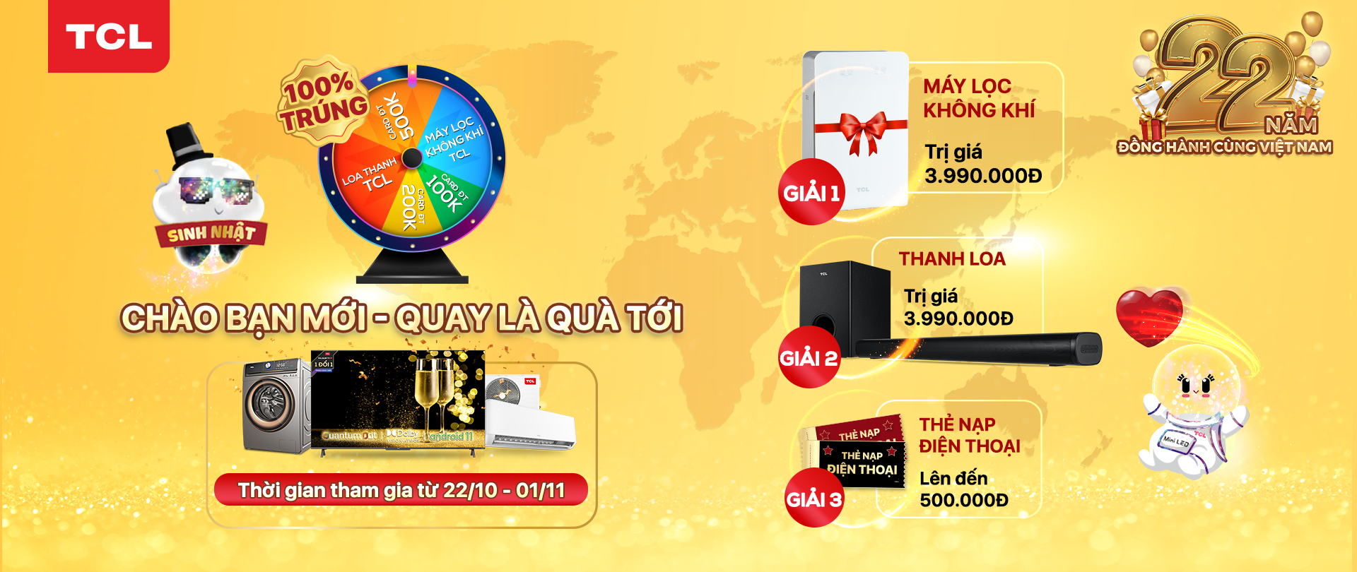 Hoà nhịp sinh nhật TCL Việt Nam 22 năm, Vòng quay bách phát bách trúng chính thức khởi động, mang đến quý khách hàng vô vàn giải thưởng giá trị