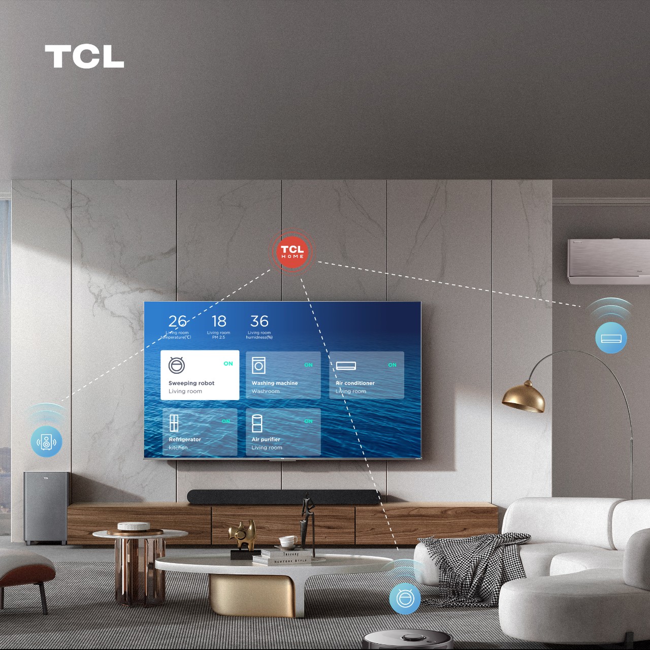Ứng dụng TCL Home trên thiết bị di động đồng thời hỗ trợ điều khiển từ mọi vị trí trong nhà. Nền tảng này đồng thời cho phép điều khiển tất cả thiết bị TCL trong gia đình như TV, máy lạnh, máy lọc không khí, robot hút bụi; kểm tra thời gian bảo hành sản phẩm, ưu đãi hiện có từ hãng.