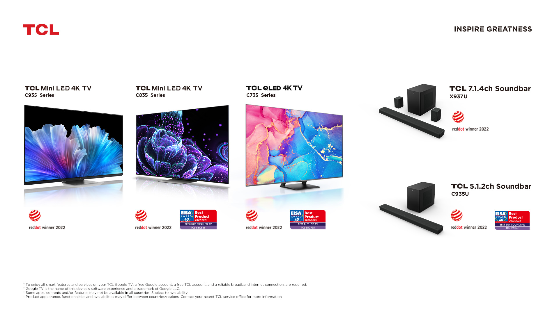 Tại IFA 2022, TCL trưng bày sản phẩm TV Mini LED C835, TV đạt giải EISA Premium. C835 là một TV Mini LED 4K toàn diện, với chất lượng hình ảnh tuyệt vời kết hợp với Dolby Atmos cho âm thanh sống động. Để mang rạp phim vào tận nhà với trải nghiệm đắm chìm hơn, lần đầu tiên tại Châu Âu, TCL QLED 98" sẽ được giới thiệu trong Bộ Sưu Tập XL mới nhất của TCL lần này.