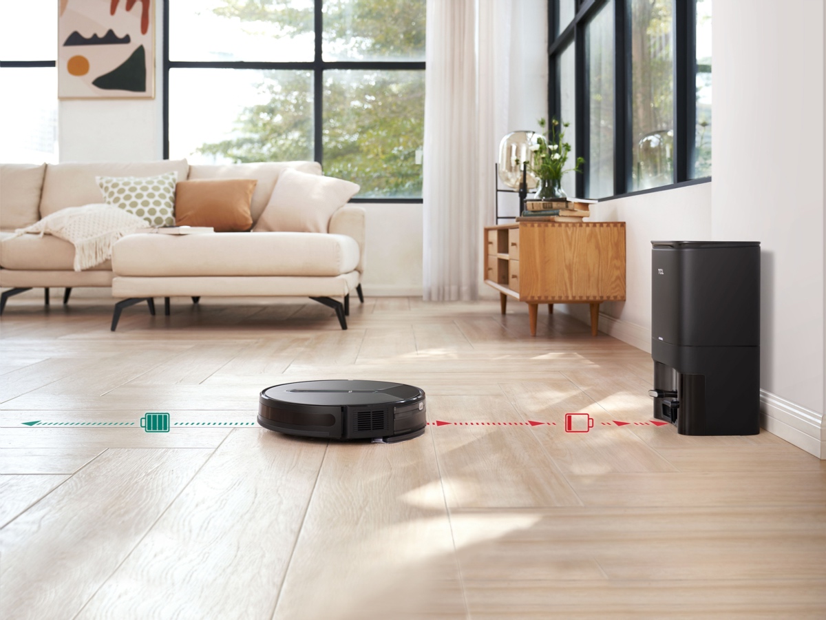 Cơ chế tự sạc lại và làm sạch điểm tiếp xúc trước khi quay trở lại đế sạc, tiếp tục tự động làm sạch từ nơi máy dừng lại