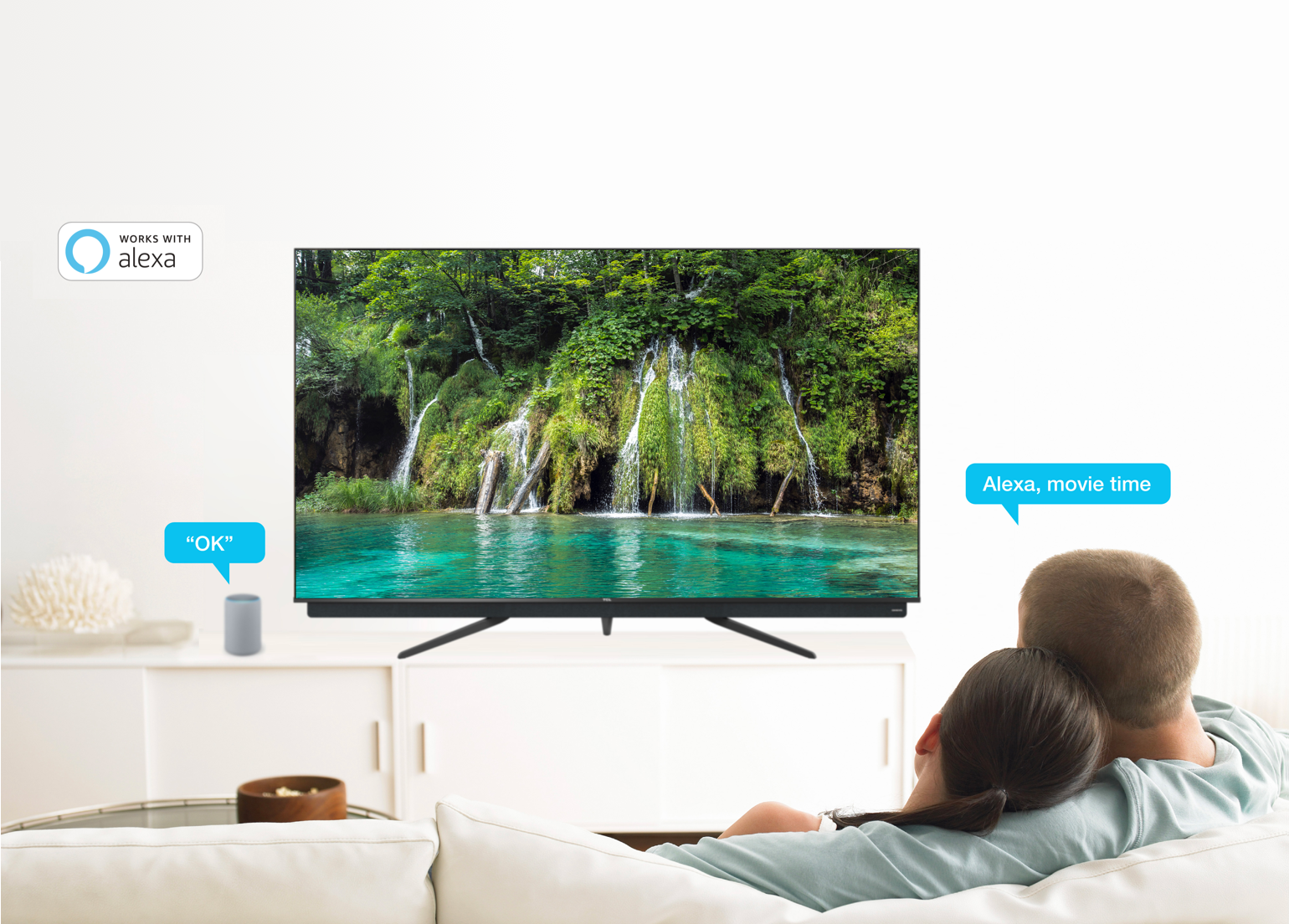 *La compatibilité Alexa vous permet d’utiliser vos appareils Amazon Alexa, comprenant Amazon Echo, Echo Dot, Echo Show, Echo Spot, et Echo Plus (achetés séparément), pour contrôler votre TV.